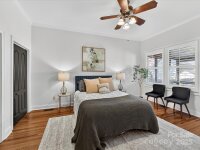 This charming bungalow sits tucked away from the buzz yet only moments from NoDa's shops and restaurants. A classic rocking-chair front porch sets the tone, welcoming you into a bright, open, and thoughtfully updated 3-bed, 2-bath home. Originally built in 1926 with a seamless 2005 addition, the home blends historic character with modern convenience. You’ll find hardwood floors, neutral finishes, and soaring 10-ft ceilings throughout. The updated kitchen features timeless cabinetry and granite countertops, while the primary bathroom offers stylish tile, a relaxing soaking tub, and a spacious frameless shower. Just off the living room and perfect for effortless entertaining, enjoy a side deck ideal for grilling and a screened-in back porch overlooking a flat, private backyard—your own outdoor escape. All bedrooms include custom closets by Closets by Design, and the plantation shutters add a polished finishing touch. With major updates like 2019 HVAC, 2022 roof and 2022 water heater, this home is truly move-in ready!