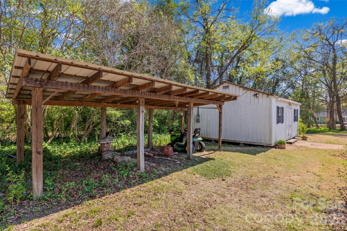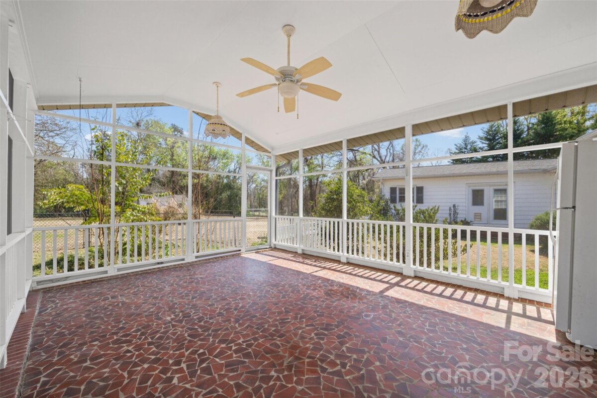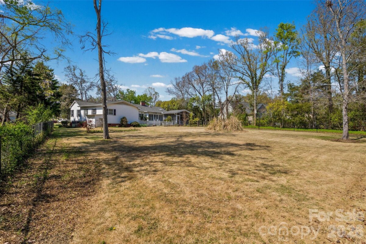 Welcome to this charming ranch home nestled on .95 acres in the highly desirable Country Club Estates golf community! Enjoy peaceful surroundings with access to golf, scenic ponds, and plentiful nature. This beautifully maintained home features fresh paint throughout, original hardwood floors, elegant crown molding, and two cozy fireplaces — a stunning brick fireplace with built-in shelving in the family room and an additional fireplace in the living room. Kitchen with granite countertops, tile backsplash, white cabinets and a skylight bring in natural light. Front living room has shutters on the windows. With 4 bedrooms and 3 full baths, including two primary suites, this layout offers incredible flexibility for multigenerational living or guest accommodations. The primary bedroom boasts brand NEW CARPET and 2 large walk-in closets. Spacious closets and abundant storage can be found throughout the home. Step outside to your own private retreat a cozy screened-in porch, charming courtyard, and classic white picket fence overlooking the private backyard. Spacious workshop for hobbies, woodwork and additional storage. NEW ROOF (2024) on both the home and workshop. Washer, dryer, refrigerator in kitchen and porch are included. All of this just minutes from downtown Rock Hill’s restaurants, shopping, and entertainment. Enjoy the beauty of a golf community minutes from everything Rock Hill has to offer!