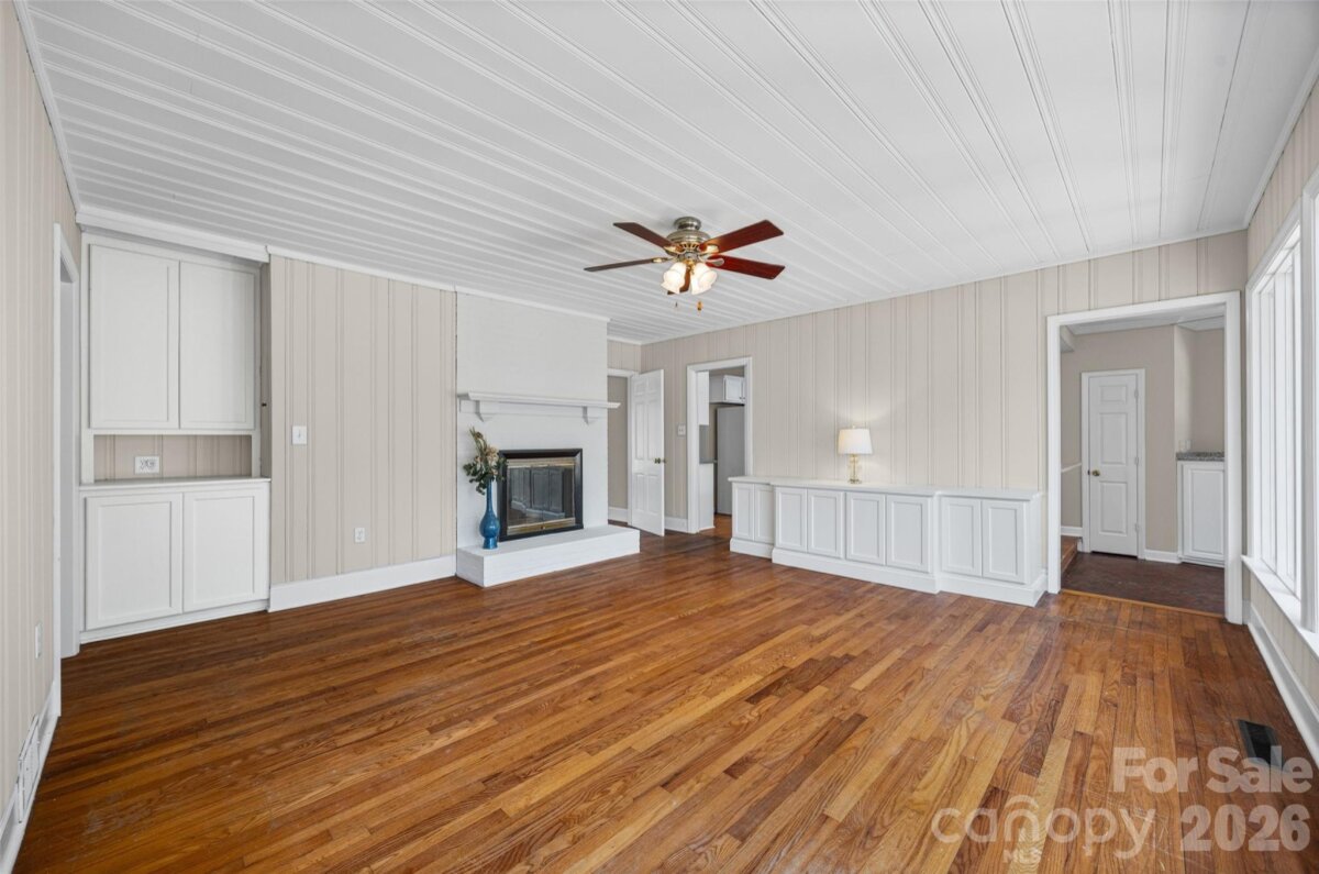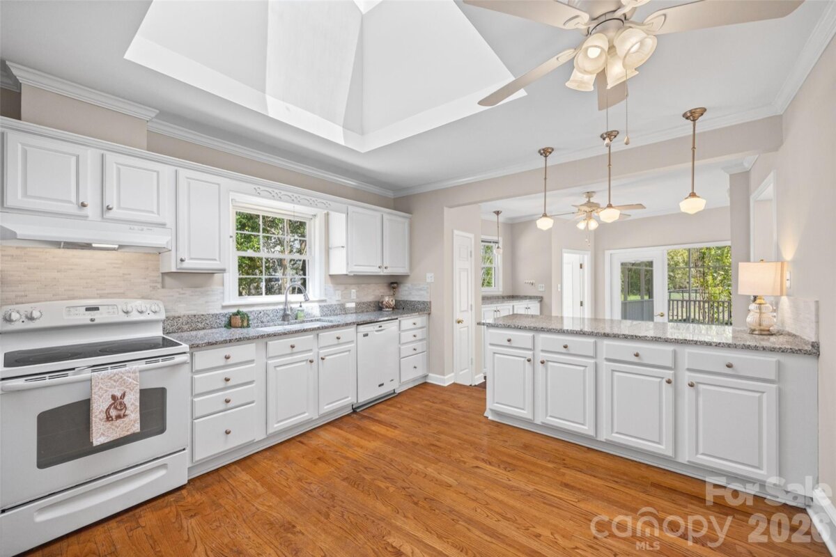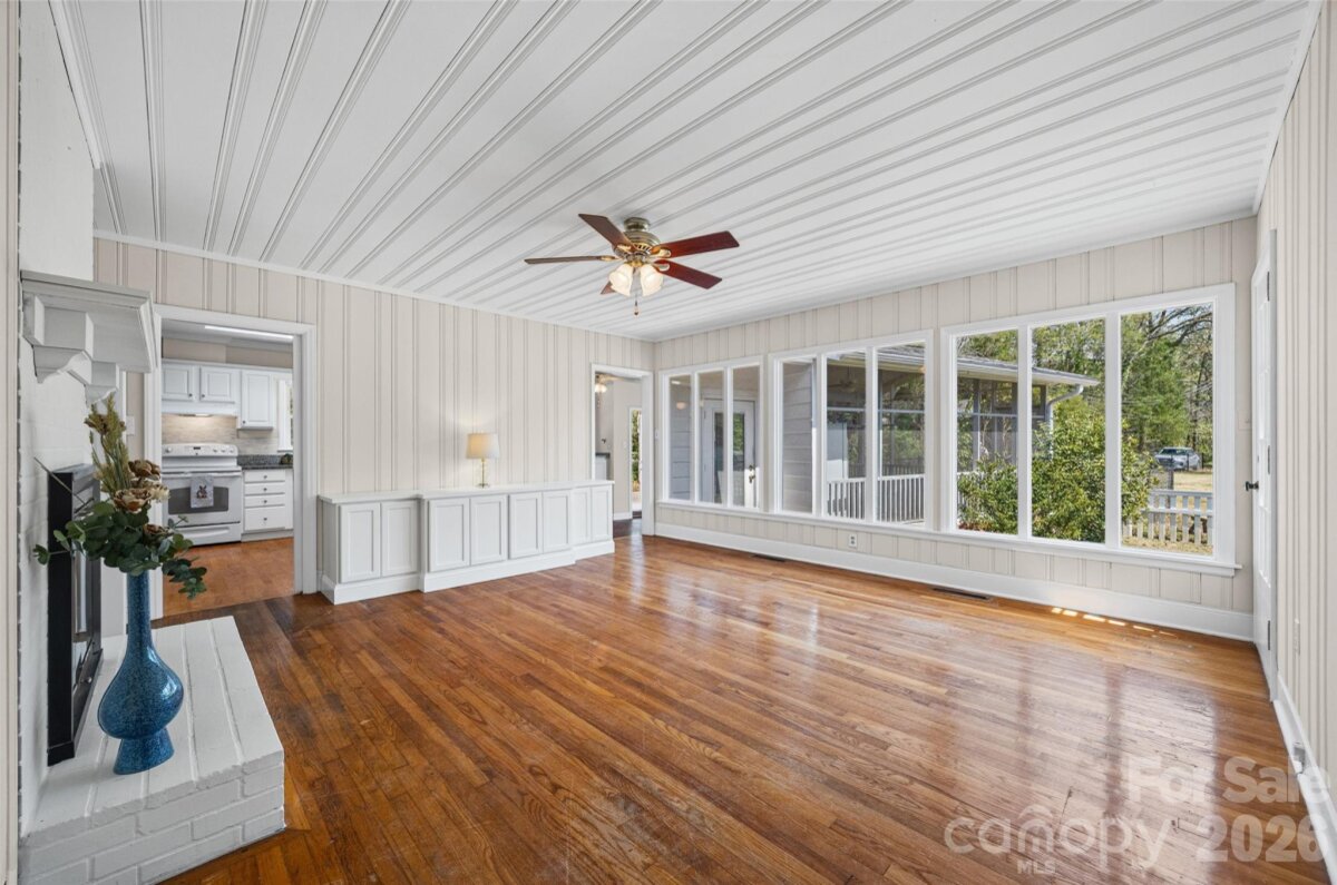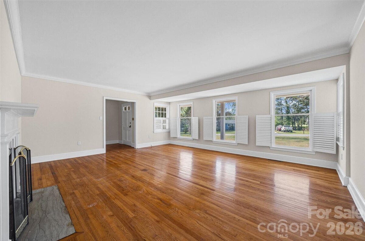 Welcome to this charming ranch home nestled on .95 acres in the highly desirable Country Club Estates golf community! Enjoy peaceful surroundings with access to golf, scenic ponds, and plentiful nature. This beautifully maintained home features fresh paint throughout, original hardwood floors, elegant crown molding, and two cozy fireplaces — a stunning brick fireplace with built-in shelving in the family room and an additional fireplace in the living room. Kitchen with granite countertops, tile backsplash, white cabinets and a skylight bring in natural light. Front living room has shutters on the windows. With 4 bedrooms and 3 full baths, including two primary suites, this layout offers incredible flexibility for multigenerational living or guest accommodations. The primary bedroom boasts brand NEW CARPET and 2 large walk-in closets. Spacious closets and abundant storage can be found throughout the home. Step outside to your own private retreat a cozy screened-in porch, charming courtyard, and classic white picket fence overlooking the private backyard. Spacious workshop for hobbies, woodwork and additional storage. NEW ROOF (2024) on both the home and workshop. Washer, dryer, refrigerator in kitchen and porch are included. All of this just minutes from downtown Rock Hill’s restaurants, shopping, and entertainment. Enjoy the beauty of a golf community minutes from everything Rock Hill has to offer!