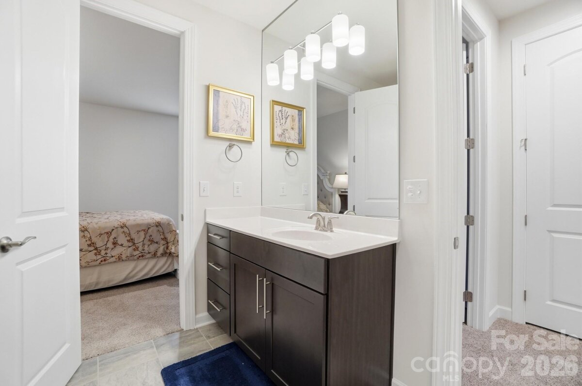 This stunning 4-bedroom, 5-bathroom home, just 4 years young, offers the perfect mix of luxury, function, and thoughtful design. The open-concept ranch layout is enhanced by a spacious loft and private second-level bedroom with full bath, ideal for guests or multigenerational living. Situated on a desirable corner lot with in a vibrant community featuring walking trails, a dog park, pickleball courts, a swimming pool, and a community center, this home is rich with upgrades, including elegant crown molding, hardwood flooring, custom wood kitchen cabinetry, and quartz countertops throughout. The kitchen flows seamlessly into the living and dining spaces, creating an inviting atmosphere for both everyday living and entertaining. Enjoy outdoor living year-round with a screened-in porch overlooking a beautiful stone hardscape patio, complete with a gas line ready for grilling. Additional highlights include an extended driveway, laundry room sink, large walk-in closets with custom organization systems, and a whole-home water filtration system. Every detail has been meticulously maintained. This home truly shows like a model and is completely move-in ready.