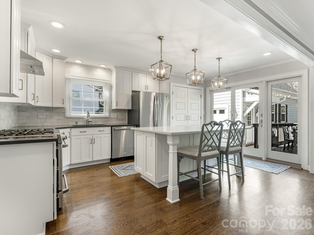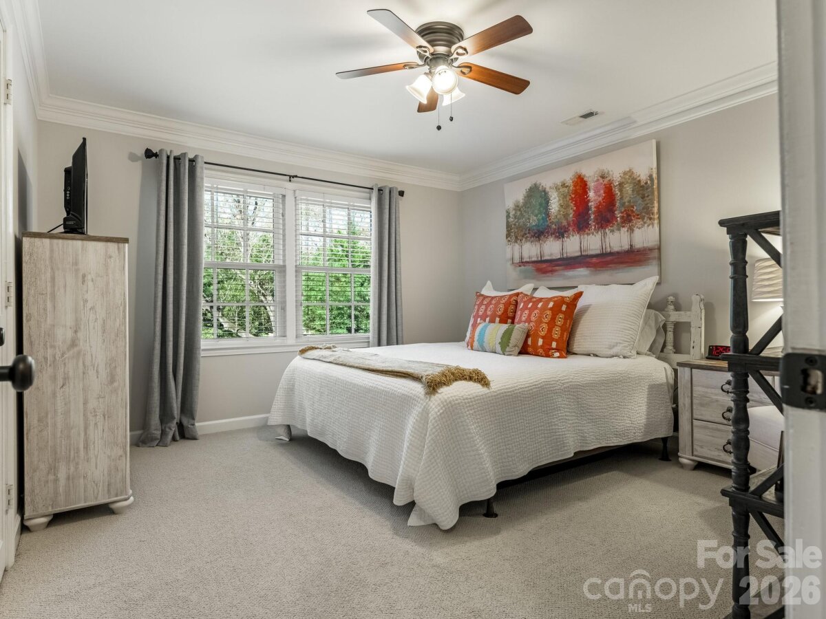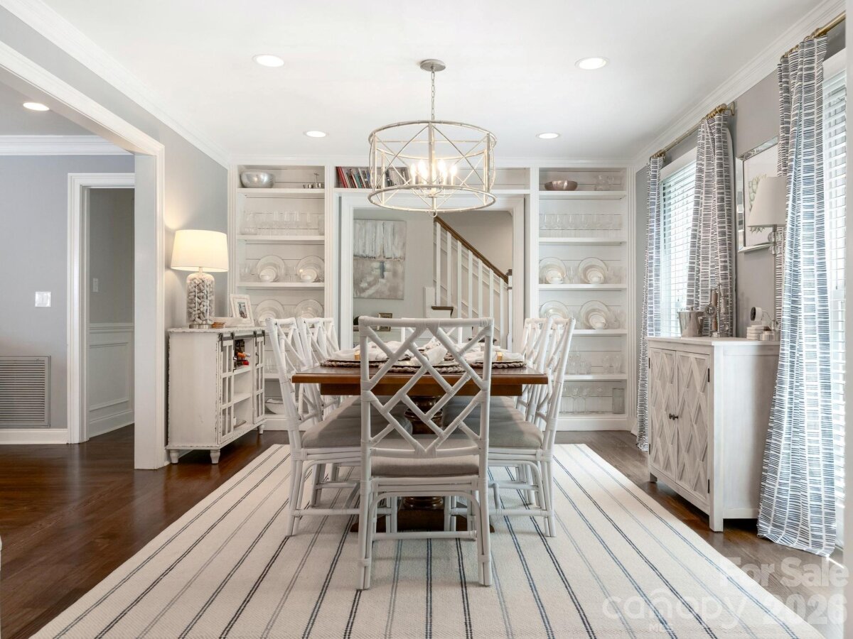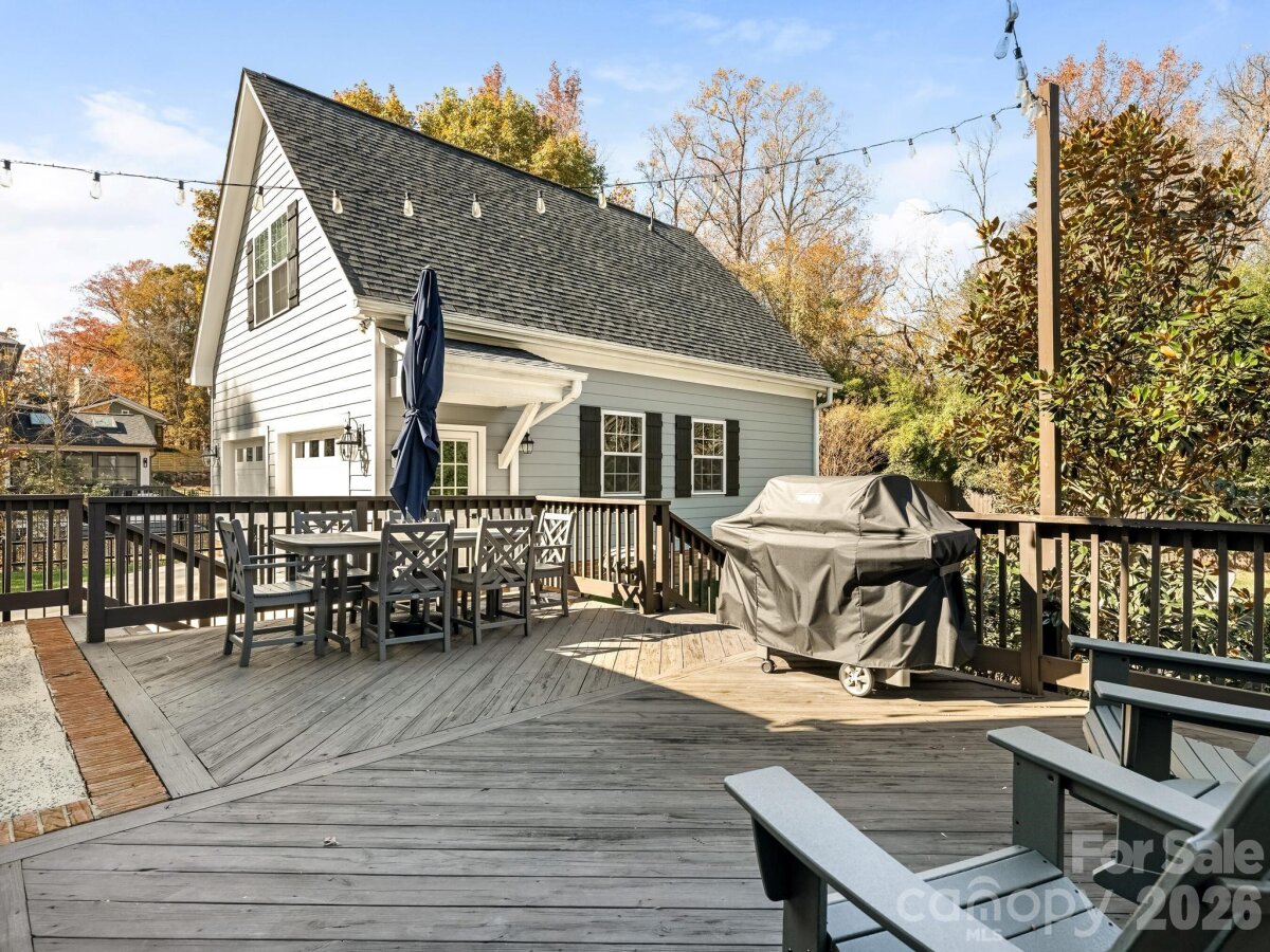 Welcome to 3524 Chevington, a beautifully updated 5-bedroom, 3.5-bath home in popular Governor's Square neighborhood. This charming home welcomes you with a covered front porch and an inviting foyer that opens to a spacious dining room with built-in shelving. The dining room flows seamlessly into a cozy sitting room with additional bookcases, creating the perfect space for entertaining or everyday living. The kitchen features white cabinetry, stainless steel appliances, including a gas range with hood, and an oversized island with quartz countertops. It opens to a warm and inviting family room with a fireplace. Downstairs, you’ll find a lovely primary suite with a walk-in closet, along with a secondary bedroom ideal for an office or nursery. Upstairs offers a large laundry room, three additional bedrooms, and a full bathroom. Outside you'll find a large deck overlooking a private, fenced yard—perfect for relaxing or hosting. A detached 2-car garage includes a fully finished living space with bathroom above, ideal for a guest suite, home office, studio, or flexible bonus area, complete with a separate entrance for added privacy. This charming neighborhood offers an active community with events like 4th of July celebrations, Halloween festivities, and holiday gatherings. All just minutes to SouthPark!