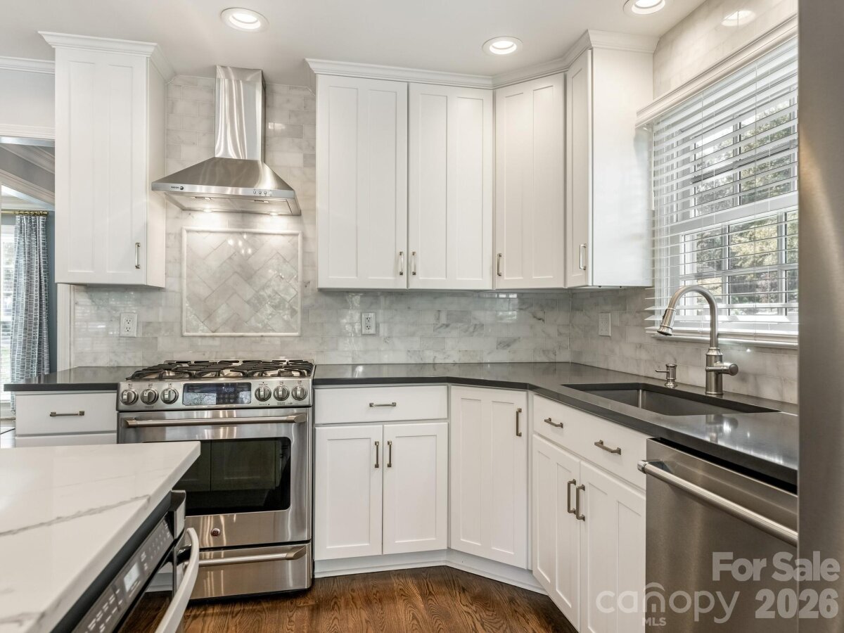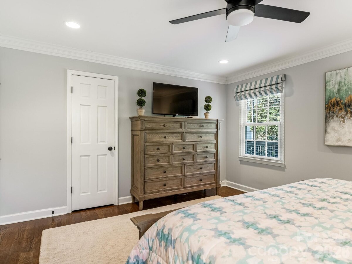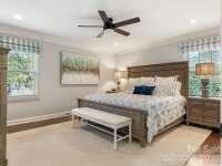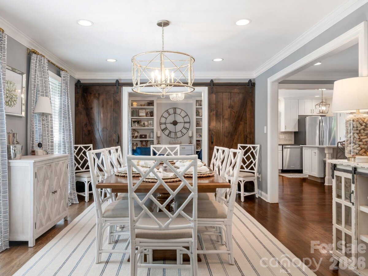 Welcome to 3524 Chevington, a beautifully updated 5-bedroom, 3.5-bath home in popular Governor's Square neighborhood. This charming home welcomes you with a covered front porch and an inviting foyer that opens to a spacious dining room with built-in shelving. The dining room flows seamlessly into a cozy sitting room with additional bookcases, creating the perfect space for entertaining or everyday living. The kitchen features white cabinetry, stainless steel appliances, including a gas range with hood, and an oversized island with quartz countertops. It opens to a warm and inviting family room with a fireplace. Downstairs, you’ll find a lovely primary suite with a walk-in closet, along with a secondary bedroom ideal for an office or nursery. Upstairs offers a large laundry room, three additional bedrooms, and a full bathroom. Outside you'll find a large deck overlooking a private, fenced yard—perfect for relaxing or hosting. A detached 2-car garage includes a fully finished living space with bathroom above, ideal for a guest suite, home office, studio, or flexible bonus area, complete with a separate entrance for added privacy. This charming neighborhood offers an active community with events like 4th of July celebrations, Halloween festivities, and holiday gatherings. All just minutes to SouthPark!