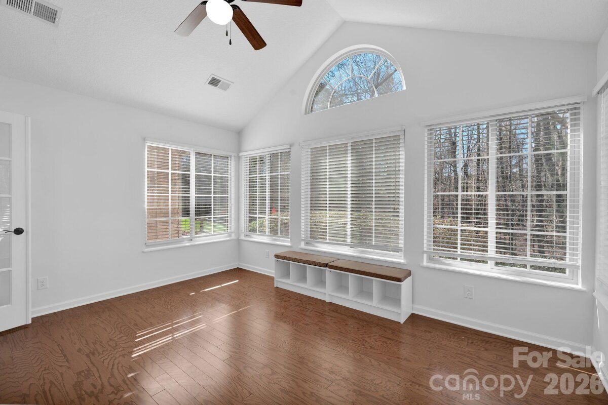 Welcome to refined, effortless living in the sought-after Polo Club at Weddington, a beautifully maintained community in the heart of Matthews. This elegant one-story patio garden home with an attached 2- car garage is nestled into the back of the neighborhood in a cul-de-sac backing up to natural woods and plush grass/landscaping, giving you privacy and peace! This home offers approximately 1,900 square feet of thoughtfully designed living space where comfort, style, and ease of living come together seamlessly. Step inside to discover a bright light-filled open floor plan enhanced by plantation shutters, BRAND new carpet in bedrooms and office/3rd bedroom, and freshly professionally painted throughout creating a fresh, crisp, and inviting atmosphere. The spacious great room serves as the heart of the home, featuring a warm gas log fireplace and effortless flow into the expansive sunroom, an ideal retreat for morning coffee, reading, or quiet afternoons. The huge sunroom overlooks the private back with natural woods and maintained plush grass and landscaping. The well-appointed kitchen offers upgraded 42-inch cabinetry, a flat island perfect for gathering and a spacious pantry. This versatile floor plan features two generous bedrooms and two full baths, along with a private office that can easily serve as a third bedroom or guest suite. Residents of Polo Club at Weddington enjoy a vibrant, amenity-rich lifestyle with access to a clubhouse, fitness center, outdoor pool, picnic areas, and recreation spaces, while lawn maintenance is included, allowing you to focus on enjoying life rather than maintaining it. Nature lovers will appreciate being just moments from the scenic trails, peaceful lake, and tennis courts at Colonel Francis Beatty Park, bringing outdoor beauty into everyday living. The home is also conveniently located minutes from upscale shopping and dining at Waverly, the Brace Family YMCA, and the vibrant charm of the town of Matthews, with easy access to the new I-485 interchange for seamless connectivity. While the community is designed with a 55+ lifestyle in mind, residency is open to all ages offering a welcoming environment where neighbors connect, friendships flourish, and everyday living feels effortlessly elevated. Washer & dryer included as well as 2 refrigerators, one in the kitchen and the garage. Don't miss this beauty!