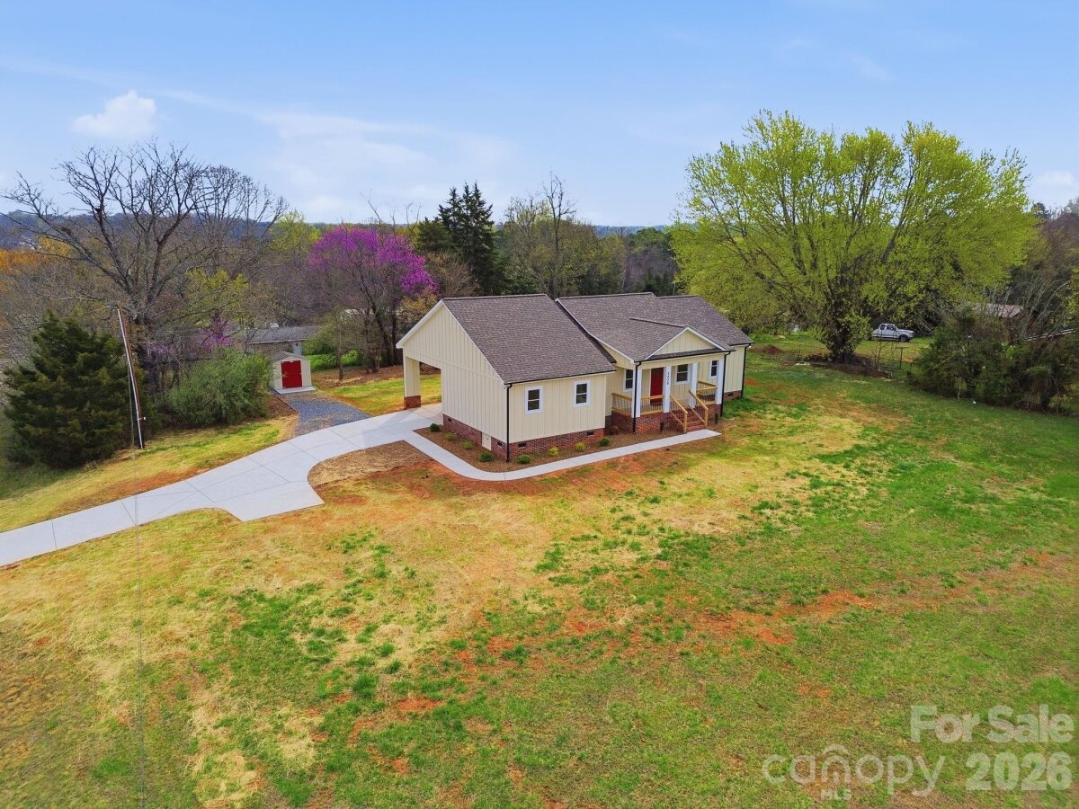 Welcome home to this beautifully crafted new construction by Terra Designs, offering modern finishes, functional design, and the space to breathe—all just minutes from Hickory’s shopping, dining, and everyday conveniences. Situated on a desirable 0.68-acre corner lot in a peaceful rural setting, this property delivers the balance today’s buyers are looking for: privacy, usability, and accessibility. This 3-bedroom, 2.5-bath home features 1,453 heated square feet plus a 120 sq ft front porch and an expansive 480 sq ft covered patio, creating the perfect setup for outdoor entertaining, relaxing evenings, or simply enjoying the open surroundings. Total 2,053 sq ft under roof. Inside, the home offers a bright, clean feel with 9-foot ceilings in the main living areas and durable luxury vinyl plank flooring throughout. The kitchen is designed for both style and function with granite countertops, stainless steel appliances, and pantry storage, flowing naturally into the main living space. The primary suite includes a tile shower and walk-in closet, while the additional bedrooms provide flexibility for guests, home office, or hobbies. A 2.5-bath layout adds everyday convenience for both living and entertaining. Additional highlights include Smart siding, Quaker windows, concrete driveway, ceiling fans, a walk-in laundry room, and a separate outdoor storage building. The spacious lot offers room to expand, garden, or simply enjoy a quieter lifestyle. Located in a USDA-eligible area, this home may provide attractive seller financing options for qualified buyers. If you’re looking for a move-in-ready new home with modern finishes and a little extra land, this is the one!