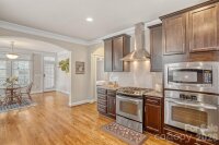 Picture yourself arriving at this beautifully maintained Saussy Burbank home, perfectly positioned on a desirable corner lot in the heart of Baxter Village. The welcoming two-story front porch invites you to sit and watch the neighborhood come alive, while tree-lined streets and sidewalks create the perfect backdrop for morning walks and evening strolls. Step inside to discover a thoughtfully designed main floor where life flows effortlessly from room to room. The great room becomes the heart of your home, where a gas fireplace with a wood mantel creates a cozy gathering spot for cool evenings. Imagine hosting friends & family as conversation flows naturally between the kitchen & dining areas, all bathed in natural light from three large windows topped w/ transom details. Rich wood flooring & elegant crown molding set the tone throughout. The kitchen is where culinary dreams come true. You'll appreciate the abundant storage in 42-inch cabinets, many featuring convenient pull-outs that keep everything within reach. Granite countertops & a crisp white subway tile backsplash provide the perfect canvas for meal preparation, whether you're using the stainless gas range or the additional wall oven for holiday feasts. Picture yourself enjoying morning coffee at the breakfast bar while recessed lighting illuminates your day, & the included French door refrigerator stands ready for all your entertaining needs. When it's time to dine, the adjacent dining room offers a serene space overlooking the backyard through two double windows. A pewter chandelier casts a warm glow over dinner conversations, while French doors beckon you to extend the gathering onto the screened porch, where fresh air & comfortable seating create an outdoor oasis for three seasons of enjoyment. At day's end, retreat to your main-floor primary bedroom sanctuary. This peaceful space offers the convenience of single-level living w/ all the luxury you deserve. The attached bathroom feels like a private spa, featuring a large tiled shower for invigorating mornings & a garden tub for relaxing evenings. Dual sinks w/ granite countertops make busy mornings effortless, while an oversized closet w/ built-in cabinets & shelving keeps everything organized & accessible. The main level continues to impress w/ 10 ft ceilings & a versatile living room featuring built-in bookcases perfect for displaying treasured collections or creating a home library. Natural light pours through a triple window at the front & side windows, illuminating this flexible space. A convenient half bath w/ wood flooring & a pedestal sink serves guests w/ style, while the laundry room w/ an included Maytag Bravos XL washer & dryer makes household tasks simple. Upstairs, three additional bedrooms offer comfortable retreats for family members or guests. One bedroom enjoys the privacy of an ensuite bath, while two others share a well-appointed bathroom—all featuring tile flooring, granite countertops, & comfort height toilets for modern convenience. Fresh carpet installed in 2021 adds softness underfoot in all four bedrooms. The spacious bonus room might just become your favorite space—envision it as a home theater, playroom, or hobby area. Three transom-topped windows fill the room w/ light, & a glass door opens to an upper-level covered porch where a ceiling fan creates the perfect spot for morning coffee or evening relaxation w/ elevated views of the neighborhood. Outside, the fully fenced backyard w/ a white vinyl privacy fence becomes your private retreat. The large screened porch, complete w/ a gas line hookup for grilling, sets the stage for countless outdoor meals & gatherings. An irrigation system keeps the front and side lawns lush & green w/ minimal effort, while the oversized detached two-car garage offers abundant storage, pull-down attic access, & convenient garage door openers. This is more than a house—it's where your story begins. Welcome home.