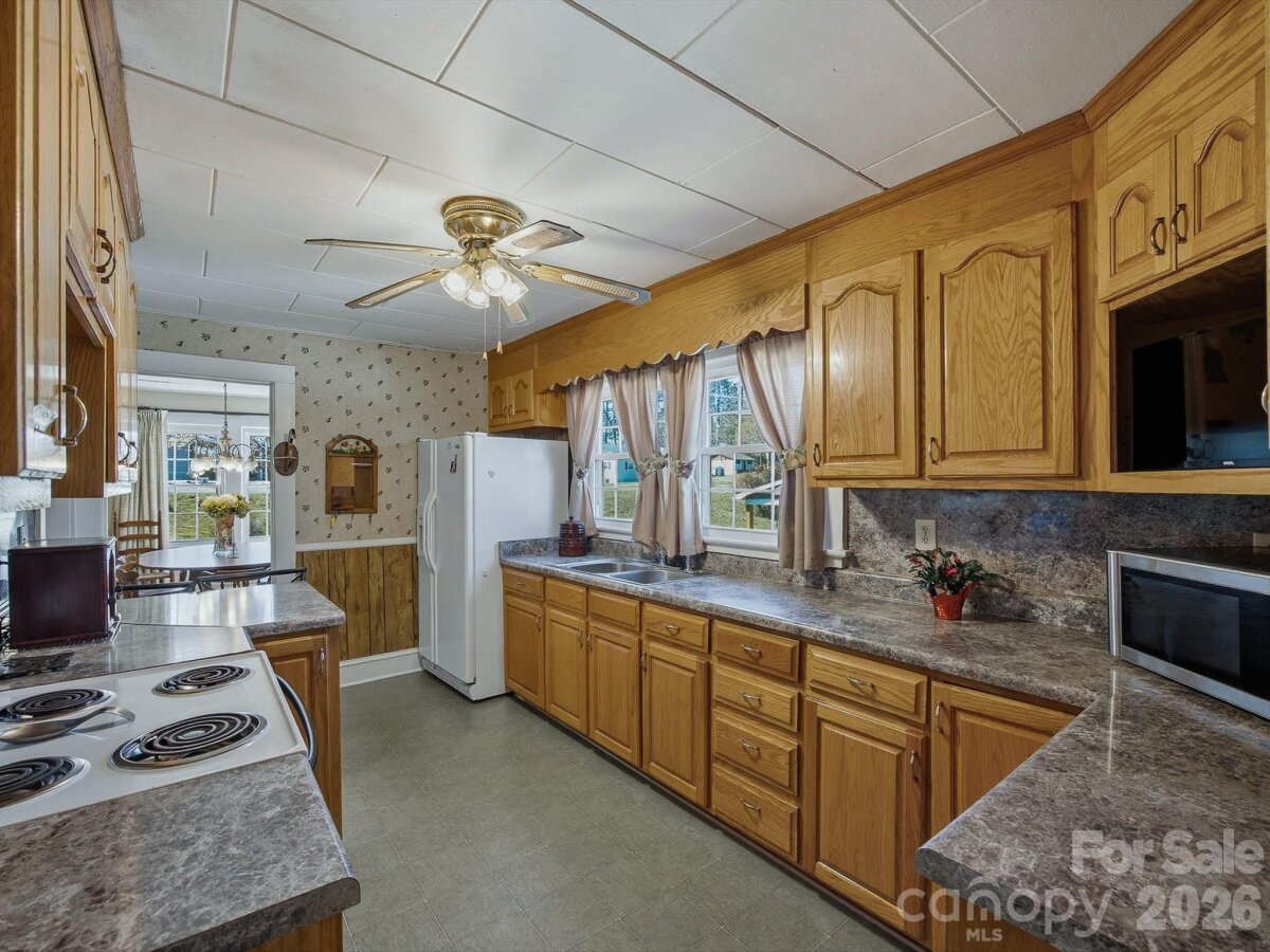 Nestled on .33 acres, this cozy two-bedroom, two-bath home features a fenced-in yard, a detached garage, and a paved driveway that leads to a huge covered back deck—the perfect spot for grilling and lounging. Inside, the kitchen shines with custom oak cabinets and updated countertops, while a formal dining room sits just off the kitchen for easy entertaining. All-new vinyl-clad windows flood the home with light, and the newer roof adds peace of mind. The primary bedroom has its own full bathroom, and the second bedroom sits conveniently beside the hallway bathroom. With septic and well water, plus city water available to connect, this home blends classic charm with practical updates. Come take a look—this cozy, well-maintained property might just be love at first sight.