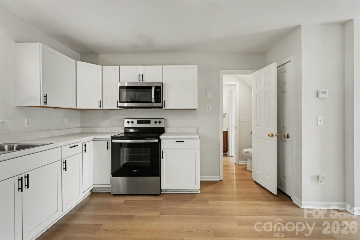 Beautifully renovated 4-bedroom, 2-bath home in the rapidly growing Grier Heights neighborhood, just minutes from Uptown Charlotte. This centrally located home offers easy access to shopping, dining, and all the amenities the city has to offer. Inside, you’ll find a bright open floor plan with great flow for everyday living and entertaining. The updated kitchen overlooks a large, flat backyard, bringing in plenty of natural light. The primary bedroom is conveniently located on the main level, while three additional bedrooms and a full bath upstairs provide flexible space for guests, family, or a home office. Step outside to enjoy the huge fenced yard with patio, perfect for relaxing, entertaining, or pets to roam. A one-car garage adds additional storage and convenience. Many updates to the property include recent painting and 2024 HVAC. In 2023, kitchen cabinets and appliances were replaced, privacy fence & new garage door were installed, new flooring installed throughout, toilets were replaced, and new gutters were installed. Located in one of Charlotte’s most rapidly growing neighborhoods, this home offers a great opportunity to live or invest in a developing area close to Uptown.