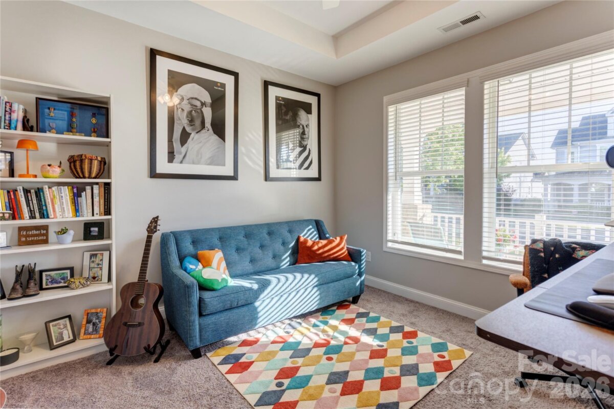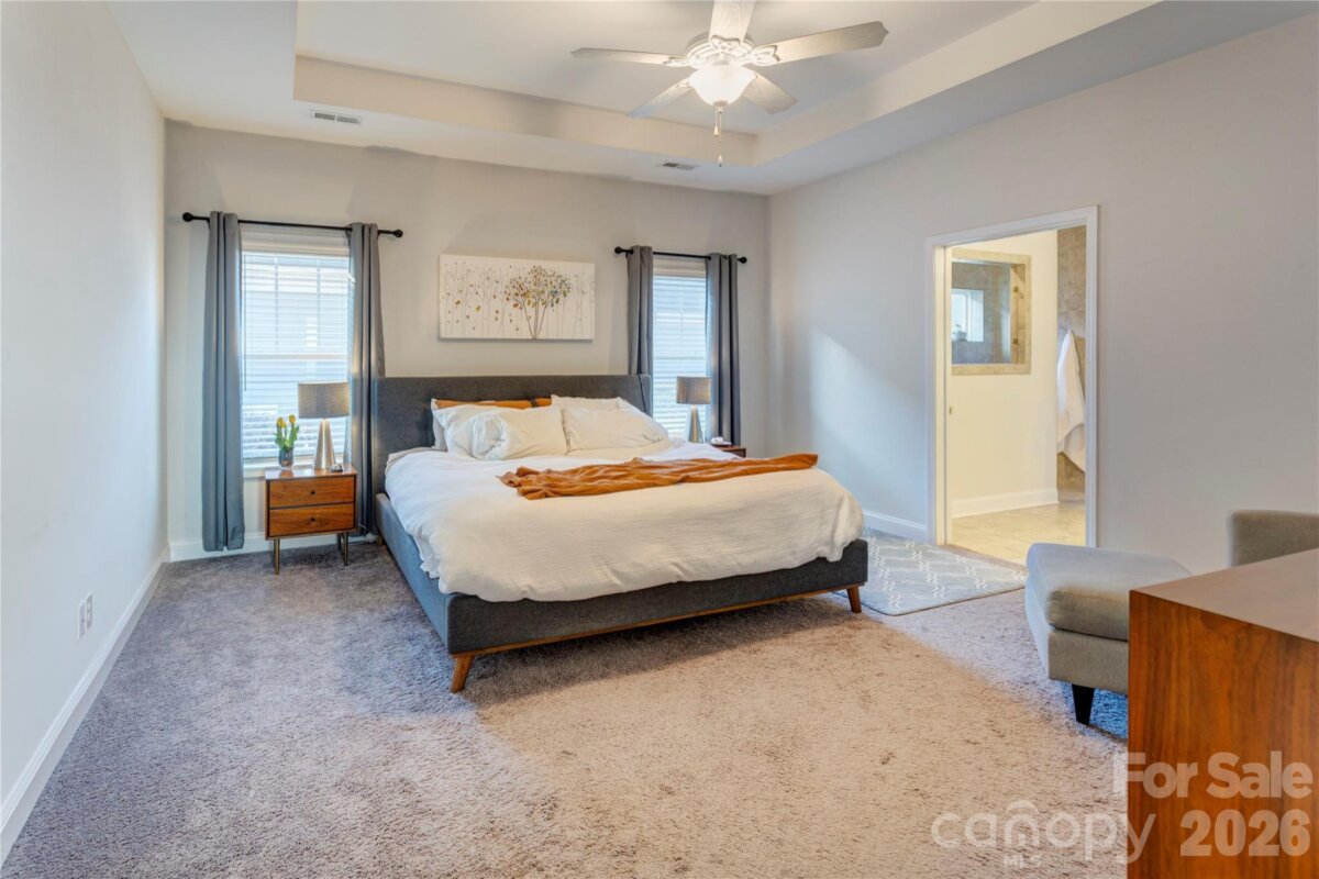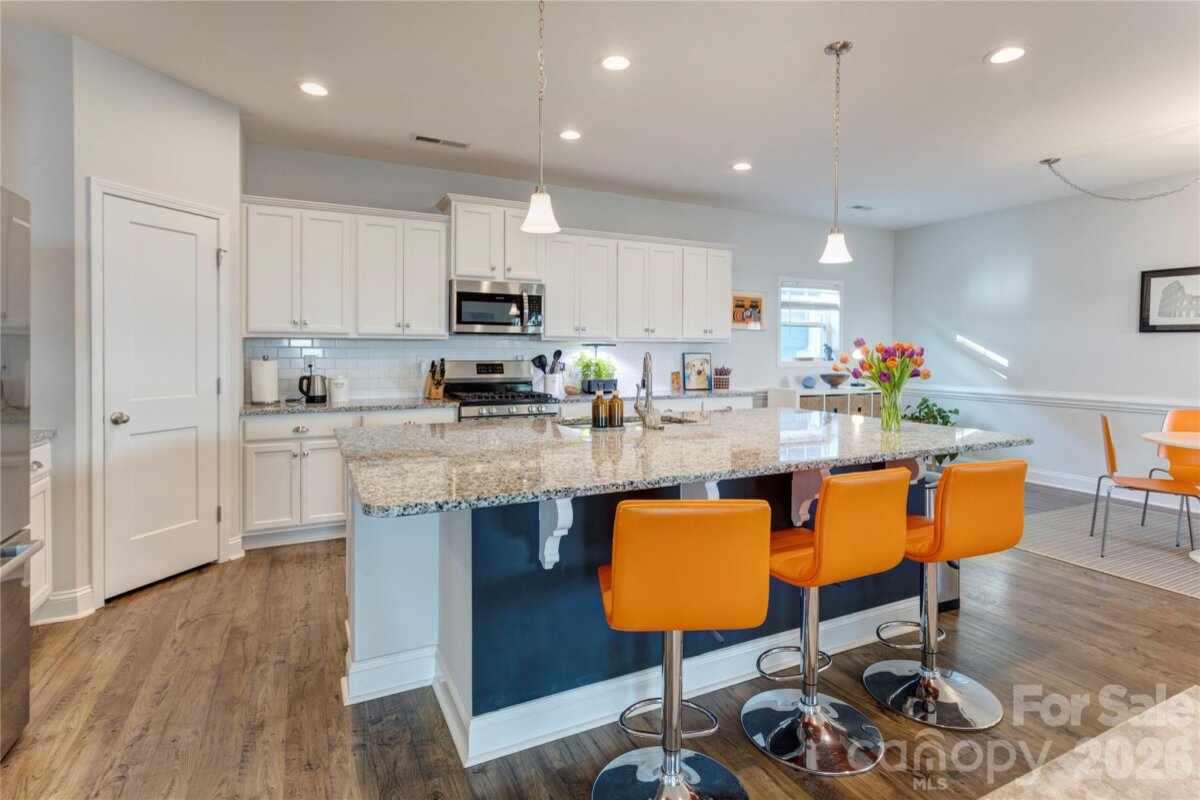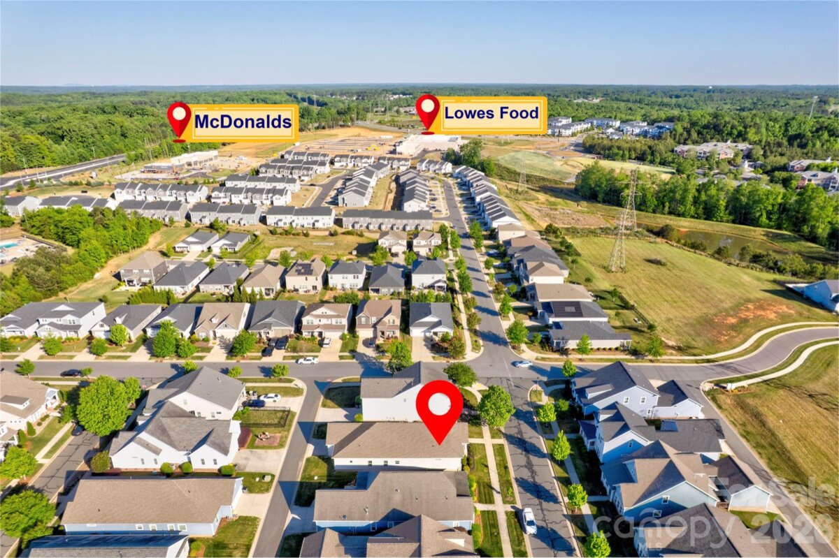 This one was worth waiting for! COZY COTTAGE MEETS OPEN AND MODERN FLOOR PLAN! A shady covered front porch greets you and invites you to sit down and stay awhile. The center of the home is a huge family room/kitchen/dining area. The kitchen island is an oversized 9' 4" x 5' 9" and is the perfect spot for gathering, entertaining and just LIVING YOUR LIFE! The kitchen features stainless steel appliances, abundant cabinetry and granite counter tops. The highlight of this bright family room is a cozy fireplace with gas logs. The family room flows flawlessly into the private and covered patio offering an indoor/outdoor living space and could easily be screened in. The primary bedroom suite is a true sanctuary with an oversized walk-in tiled shower, double vanity and walk-in closet. The split bedroom plan offers an additional two generous bedrooms and a full bath complete this comfortable home. A double garage is tucked in back for great parking and storage, while maintaining the cottage curb appeal. Located in the always popular Kellswater Bridge, this home is just 6/10 of a mile from the neighborhood amenities which offer a huge outdoor pool, clubhouse, tennis courts, game court, volleyball, pickleball and dog park. The neighborhood offers easy access to the greenway for recreation. Convenient to I-85, it's the perfect location for commuters to Charlotte.