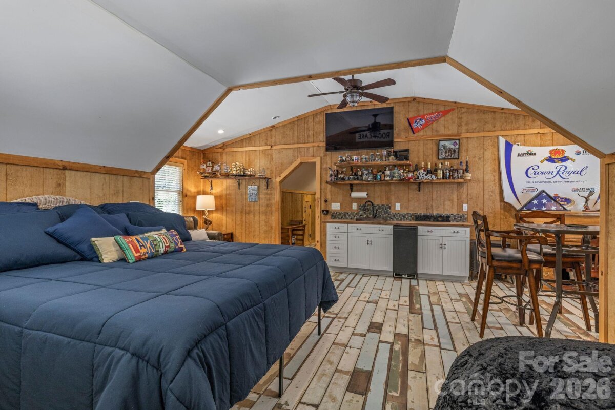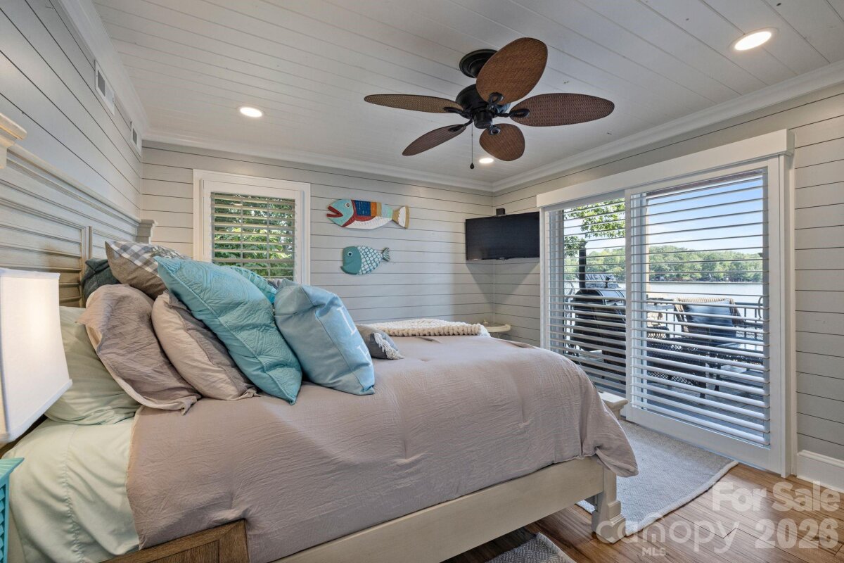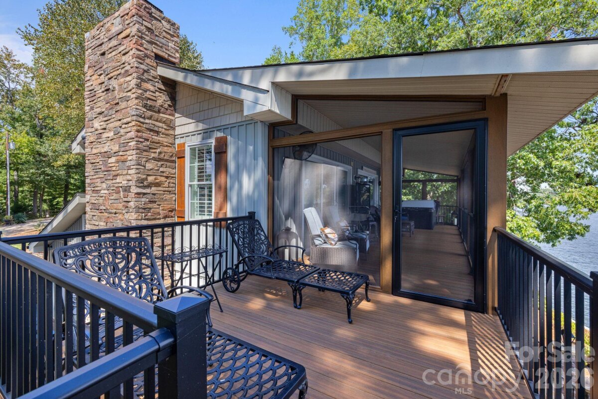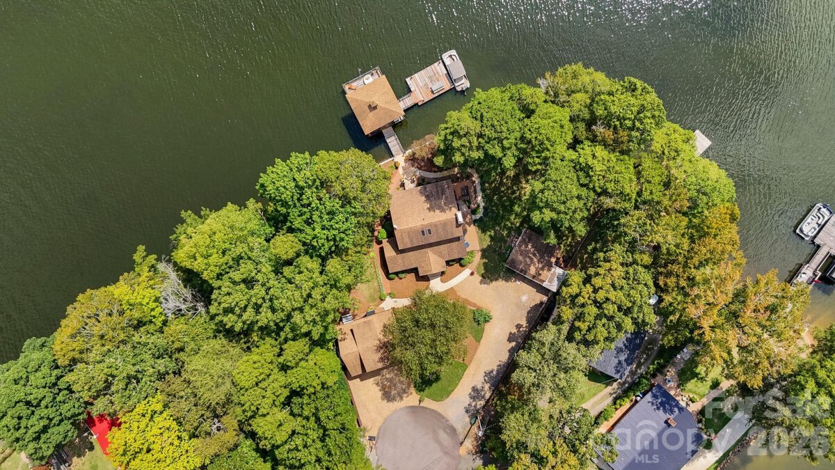 Lakefront EXTENSIVELY remodeled Home! Double Lot w/ 2nd Living Qtrs & Double-Deck Dock/Gorgeous LONG range VIEWS w/ manicured irrigated lawn & landscaping/Outdoor UPPER-LEVEL HOT TUB! PLUS 846 HTD sq ft 2.5 car detached garage PLUS 633 HTD sq ft apartment up + FULL BATH! Custom Plantation Shutters/Level 4 granite, matching lighting w/ copper sink & outdoor gas lights on stone pillars! Tankless water heaters! Garage/Apartment excellent for entertainment/AirBnB/Camper hookup for guests! Partial steel Frame home! HOT & COLD water outside for washing your TOYS! Deep water year around, excellent lighting, tiki bar, dock w/ power & water/16+ ft at full pond! Four porches, with TVs & can entertain 35 to 45 comfortably! Porches have moisture shield material & ducks-back flooring, stamped concrete. Upper screened porch - primary bedroom! Great fishing - release area from fishing tournaments nearby! Minutes from public boat launch & lakeside fuel for easy watercraft adventures.