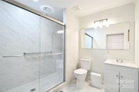 Newly renovated full brick, move in ready home with a great yard close to Uptown, NoDa, Plaza Midwood, and South End. Winterfield is an established neighborhood with no HOA, and this is a larger house in the neighborhood that has been beautifully updated! 5 bedrooms, 2000 sqft, and a split level layout would work great as an AirB&B, short term rental, or a family home. Centrally located allowing you to experience all that Charlotte has to offer while living in a great community with a suburban feel near the city. Main/upper levels have beautiful original hardwoods that are in great shape and show the character of the home. Brand new fans, fixtures, and lighting throughout the entire house. Kitchen updated with tile floors and backsplash, quartz countertops, new custom island, and a gourmet sink. Lower level has brand new high quality LVP floors, ceiling fans, and a fantastic bathroom. Brand new windows on the upper level and the entire home has been painted a clean neutral color. All 3 bathrooms in the house have been completely renovated with luxury tile and brand new everything! Bigger flat backyard that's fully fenced, has a freshly stained deck, and a 2 car carport within the brand new wood gate. Brand new concrete driveway. This home was on the market with tenants in place in 2025, and during the renovation, It is now ready showings with a new price tag and and improved features! Roof was replaced in 2020 and the HVAC system was replaced in 2017.