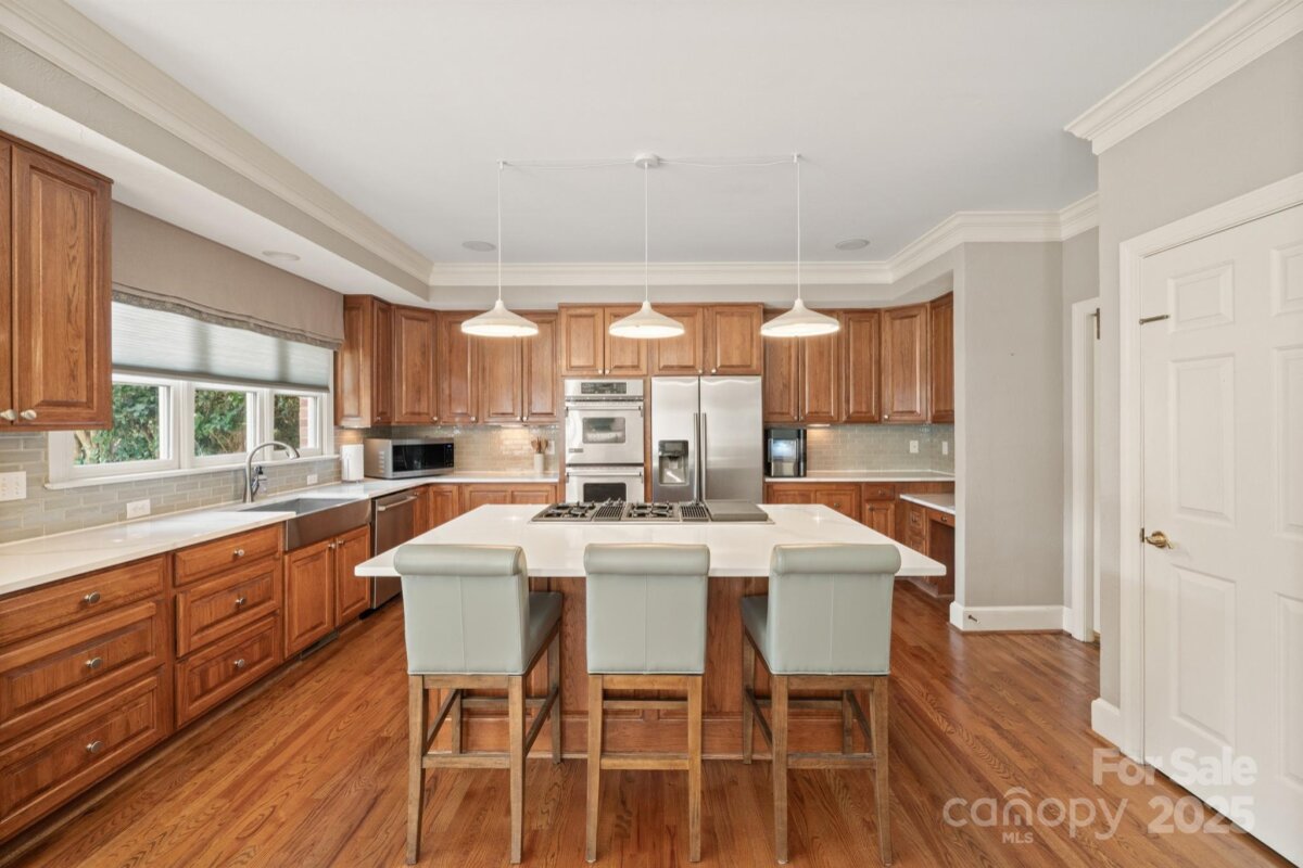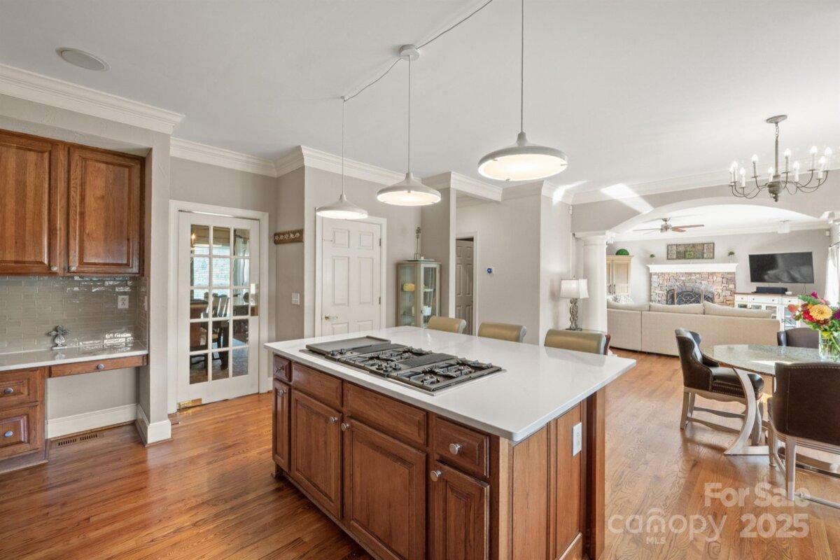 LUXURY LAKE LIVING with this timeless transitional offering distinctive stonework, all brick architectural charm! Soft glowing gas lanterns light the way to a welcoming, stately brick foyer. The attention to detail and superior craftsmanship is evident in this spacious home located in upscale Governor’s Harbour. SPACIOUS floor plan boasts comfort, style and great functionality! Beautiful EIK w new quartz tops, subway tile back splash, oversized island w gas cooktop - all open to a large Family room. Easily transition from indoors to outdoors through French doors leading to a cozy patio w custom fireplace, level, fenced back yard. Lovely primary suite with gorgeous fireplace, large wic, and private bath with dual sinks, tiled shower and garden tub. All additional bedrooms are generously sized, have their own baths and walk-in closets. Bonus/bedroom has separate bath and an expansive walk in attic for storage. Finished basement offers work out room, laundry room and a flex room. 3 car garage! Neighborhood has lake access and views of Grandfather Mountain. Don’t miss this opportunity to own an incredible home!