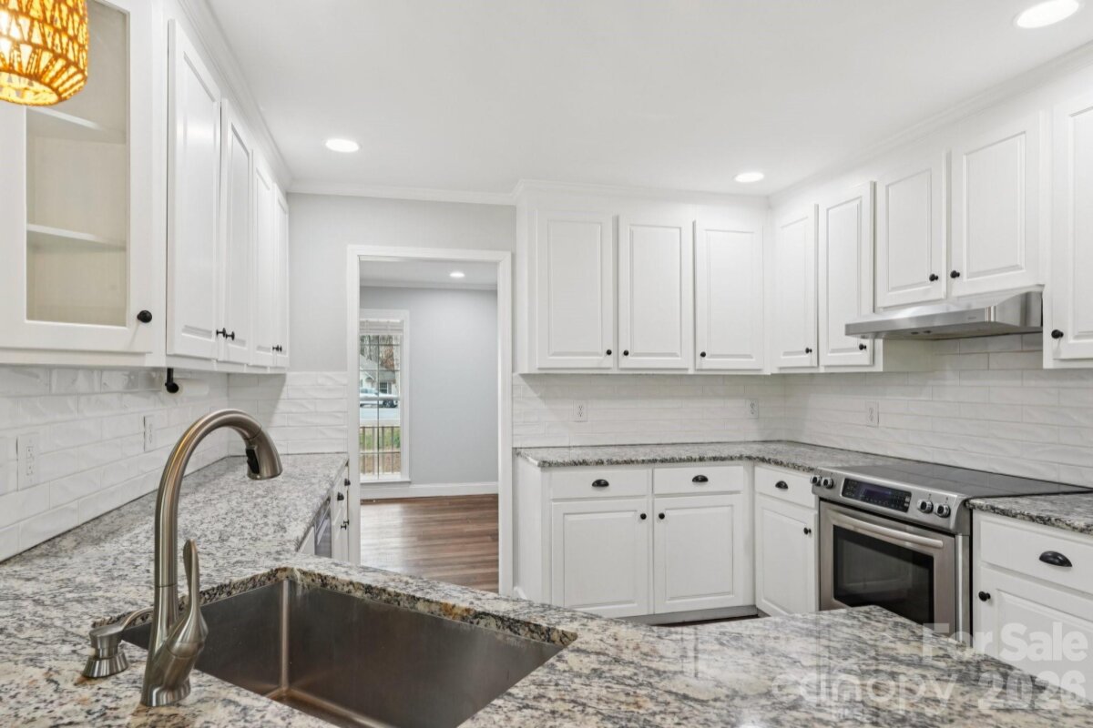 Tucked on a quiet cul-de-sac in Sherrills Ford, this move-in ready home sits on a large, private lot with seasonal views of Lake Norman and convenient access to nearby shopping, dining, and lake recreation. The home features numerous interior upgrades including updated flooring, interior doors, baseboards, lighting, and refreshed bathrooms. The kitchen offers granite countertops, stainless appliances, updated fixtures, and a stone accent beneath the bar area. The living area features a tray ceiling, fireplace, and access to the rear deck, creating a comfortable space for everyday living and entertaining. The primary suite includes an updated bathroom with a tile walk-in shower and modern vanity. Recent improvements include fresh interior paint in the main living areas, primary bedroom, and second bedroom, along with a new HVAC system. Outdoor living is a highlight of the property. The deck overlooks a large, private backyard surrounded by mature trees and offers seasonal views of Lake Norman. The spacious lot provides room to relax, entertain, or enjoy the natural setting. Conveniently located near The Village at Sherrills Ford, grocery stores, restaurants, and with easy access to Hwy 150 and Hwy 16. Several Lake Norman public boat launches are also nearby, making it easy to enjoy lake living.