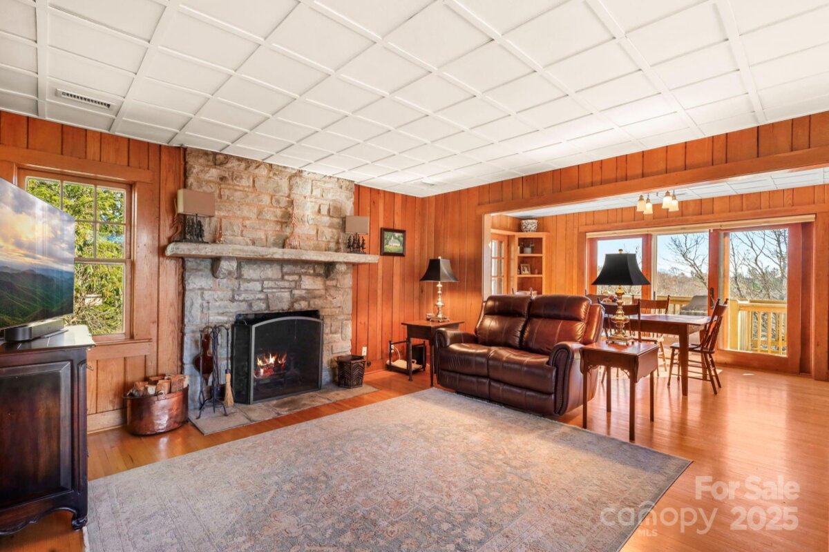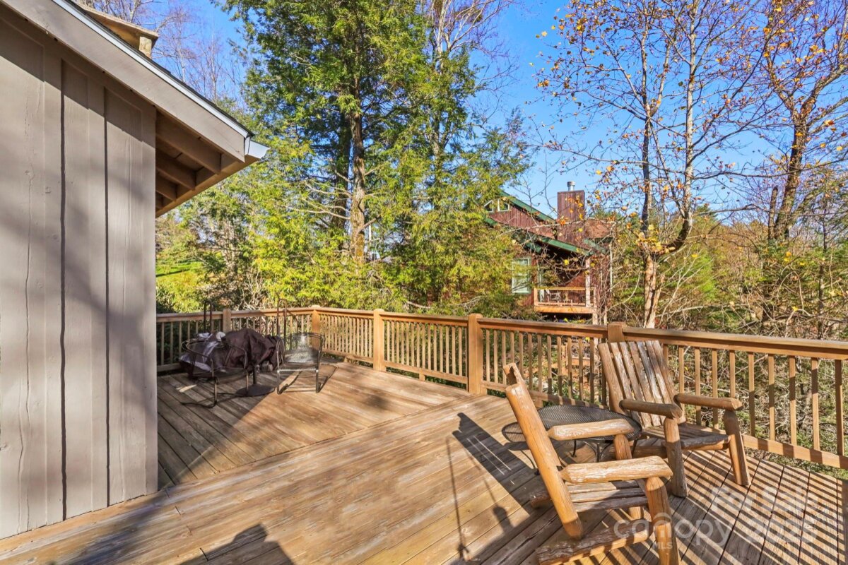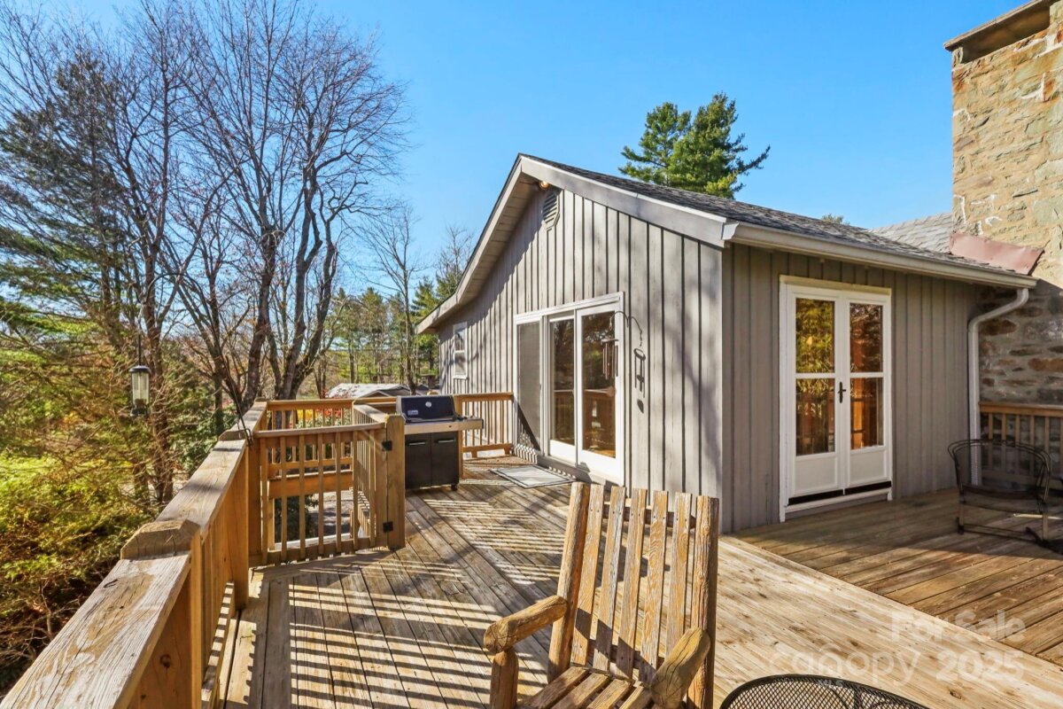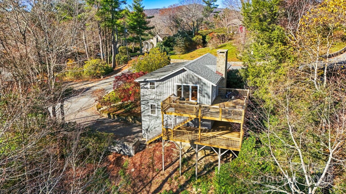 Timeless and charming Blowing Rock cottage, located in the highly sought after Echo Park area. Minutes from downtown Blowing Rock, but in a quiet, walkable and friendly neighborhood. Sit back, relax and enjoy the beautiful sunset view of the mountains from the gracious rocking chair porch, or enjoy the sunshine from the other decks (over 900sqft). Unusually, for a Blowing Rock cottage, this home features 4 generously sized bedrooms that are ideally separated and 3 full bathrooms (one en suite). The main floor living room features a stone, wood burning fireplace, and the downstairs den offers a separate living area. Gorgeous hardwood floors throughout. New heat pump 2025, among the numerous improvements.