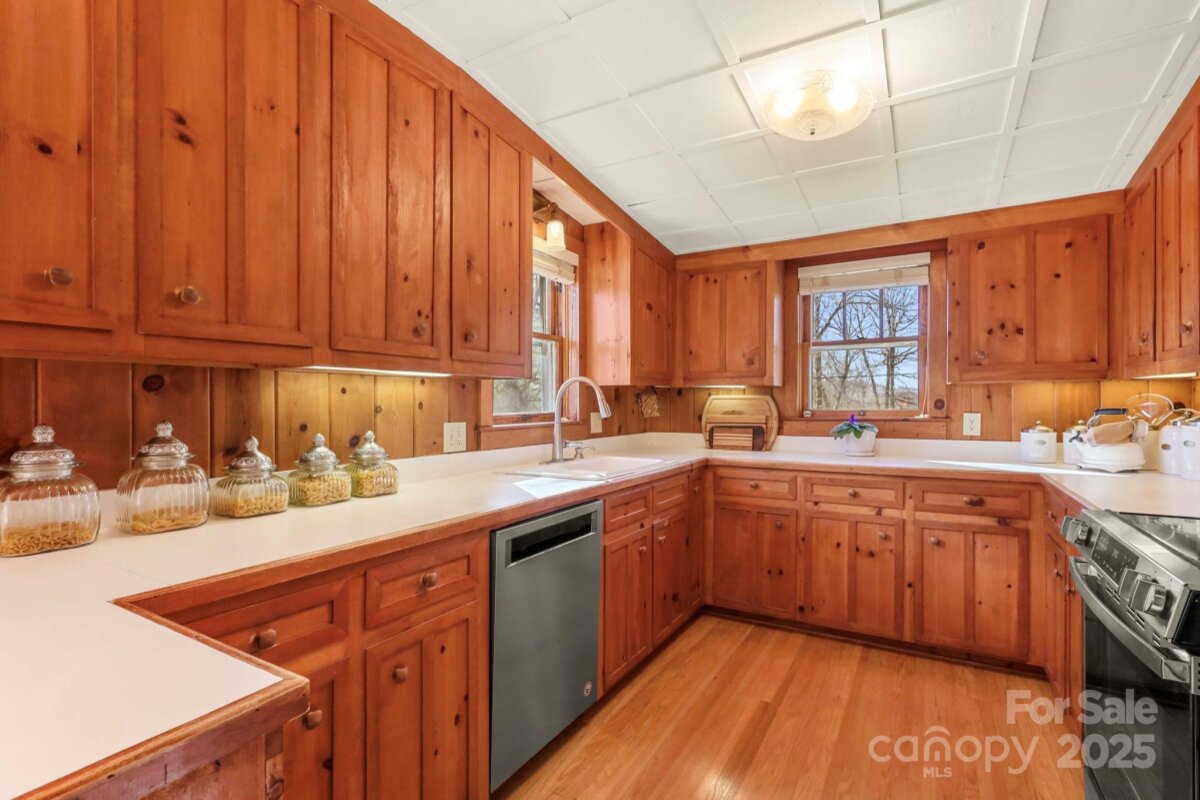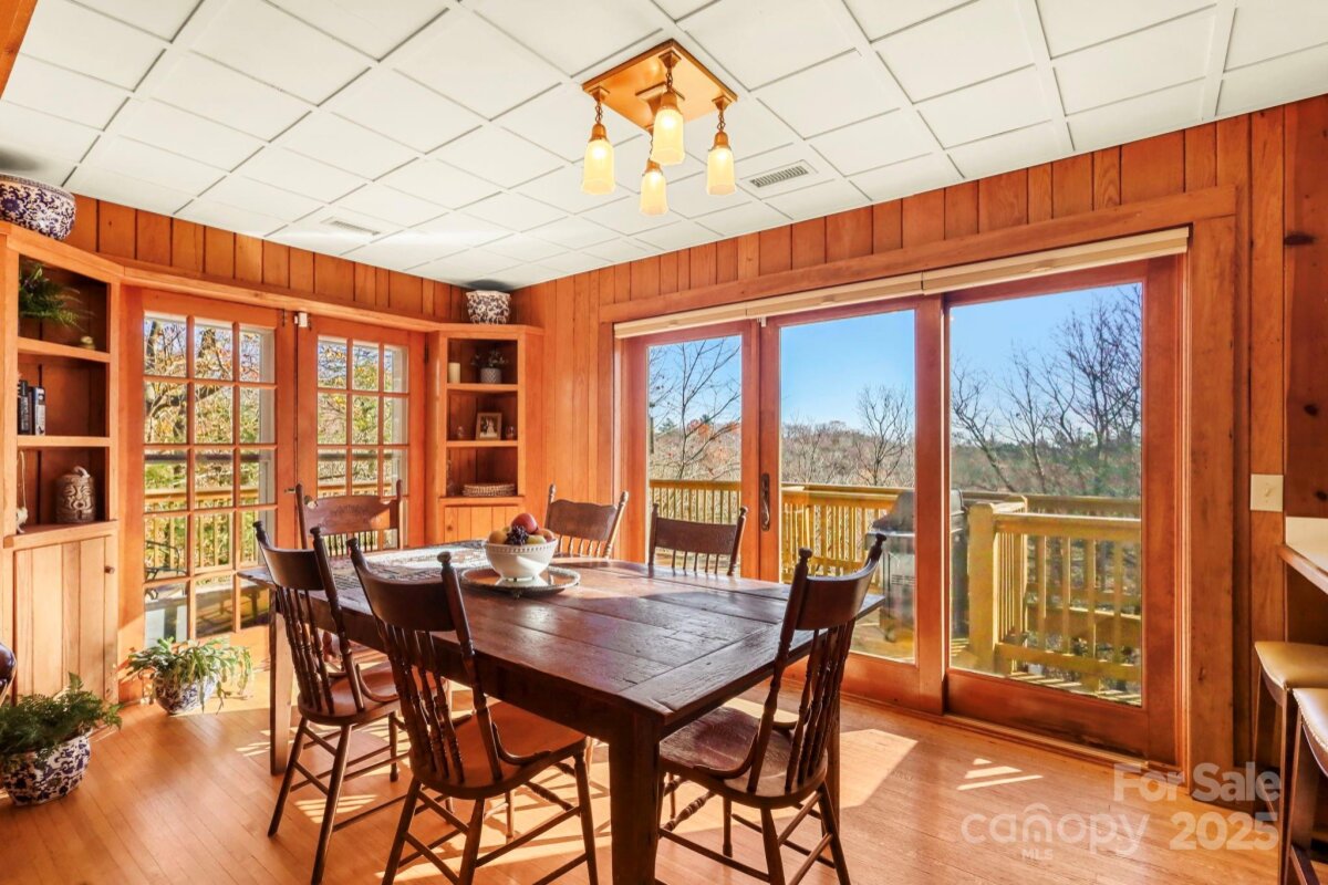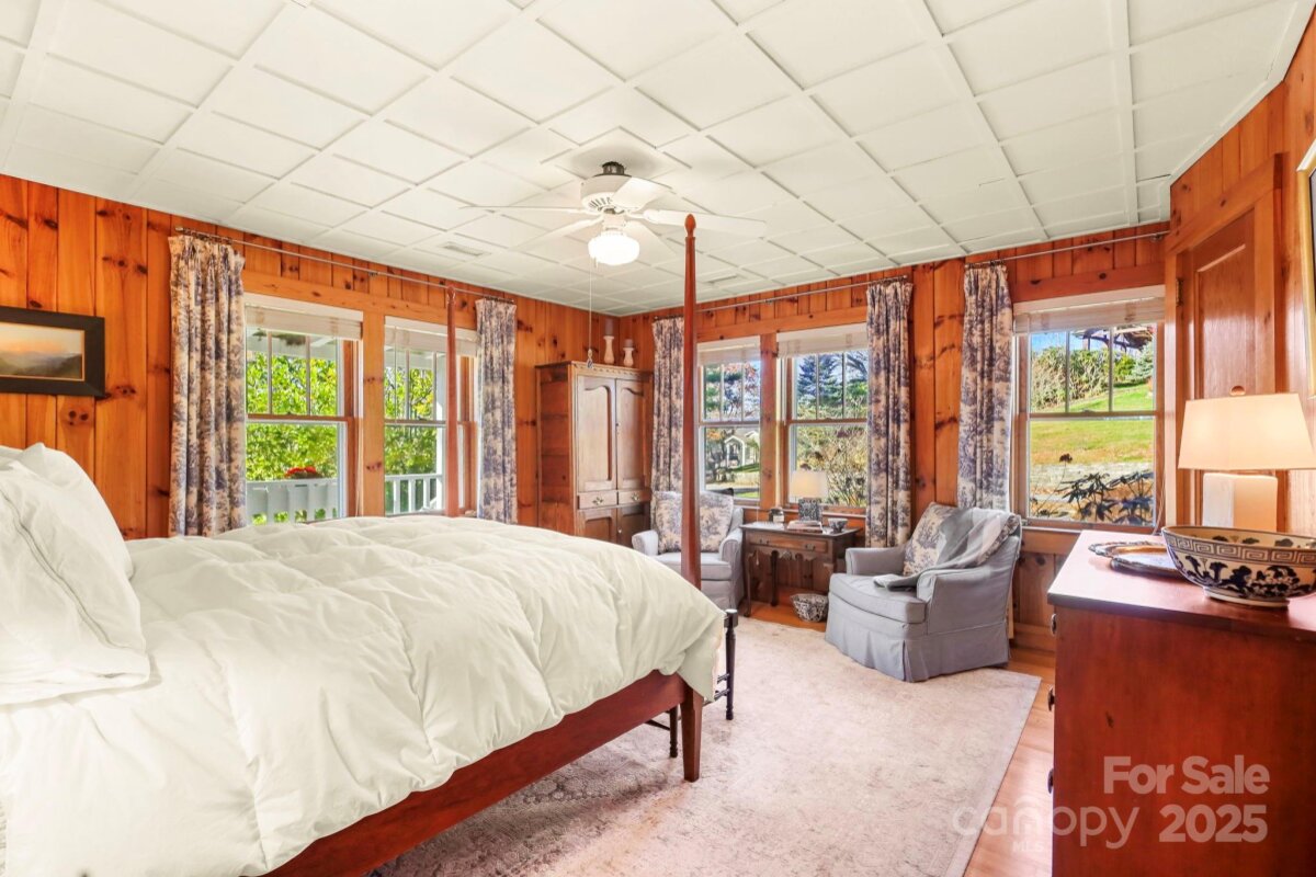 Timeless and charming Blowing Rock cottage, located in the highly sought after Echo Park area. Minutes from downtown Blowing Rock, but in a quiet, walkable and friendly neighborhood. Sit back, relax and enjoy the beautiful sunset view of the mountains from the gracious rocking chair porch, or enjoy the sunshine from the other decks (over 900sqft). Unusually, for a Blowing Rock cottage, this home features 4 generously sized bedrooms that are ideally separated and 3 full bathrooms (one en suite). The main floor living room features a stone, wood burning fireplace, and the downstairs den offers a separate living area. Gorgeous hardwood floors throughout. New heat pump 2025, among the numerous improvements.