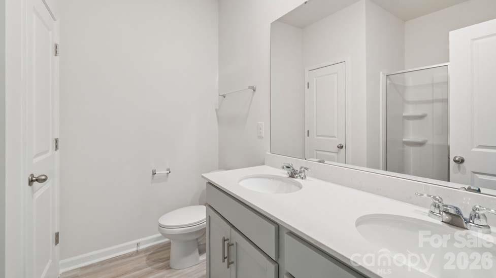 The Winston is a gorgeous, two-story home that boasts a primary suite on main level. This ravishing modern two-story home boasts 9' ceilings, an open-concept layout, a formal dining room, breakfast area, kitchen and large family room with a gas fireplace. The gourmet kitchen features stainless steel appliances, center island, ample cabinets, and a large breakfast room, perfect for casual dining. Upstairs, there are two spacious primary suites with private bathroom and large walk-in closet, one on each level. The Winston includes versatile loft area. This home is a "SMART" home and comes with a Honeywell Thermostat, Qolsys panel, Amazon Echo Pop, Kwikset Keyless Entry Pad, and a Video Doorbell. In addition to this, the home also includes a Pestban system and bait stations.
