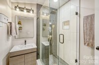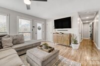 Welcome to 3701 Lynette Court in Charlotte’s thriving Clanton Park neighborhood, where modern design meets unbeatable location. Tucked away on a spacious cul-de-sac lot just minutes from LoSo, Revolution Park, and Uptown Charlotte, this fully remodeled 3-bedroom, 2-bath bungalow delivers style, function, and that hard-to-find Charlotte charm. Renovated in 2022 from top to bottom, this home features laminate flooring throughout, designer lighting, and a sleek electric fireplace with multi-color flame feature that creates a striking focal point in the living room. The open layout flows effortlessly into the stunning kitchen showcasing quartz countertops, soft-close cabinetry, stainless steel appliances, subway tile backsplash, and updated fixtures that feel straight out of a design magazine. Both bathrooms have been completely refreshed with designer tile, modern vanities, and updated plumbing fixtures, offering a clean, contemporary feel. Additional upgrades include new windows, architectural shingle roof, and thoughtfully designed laundry and pantry spaces that maximize storage and convenience. Step outside and enjoy a fully fenced backyard with an expansive patio—perfect for entertaining, grilling, or simply relaxing under Carolina blue skies. The rare two-car detached garage is a standout feature in this area, offering ample parking, storage, or workshop potential. All of this sits on a generous cul-de-sac lot that provides privacy and room to spread out. If you’ve been searching for a move-in ready home near LoSo’s breweries and restaurants, green space at Revolution Park, and a quick commute to Uptown Charlotte, this is the one. Stylish, updated, and in a location that keeps getting better—3701 Lynette Court is ready to impress.
