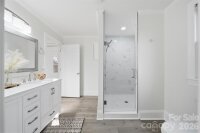 Stunningly remodeled 3BR/2BA residence perfectly positioned on Rock Barn’s championship golf course, offering serene pond and fountain views. This one-level home with basement blends timeless charm with modern luxury and features an open, light-filled layout, fresh interior paint, new 22-mil LVP flooring throughout, and a cozy gas fireplace. The showpiece kitchen is designed for both function and style with quartz countertops, an oversized island, stainless steel appliances, and a striking tile backsplash. The spacious primary suite offers a true retreat with dual sink vanities and a beautifully tiled tub/shower with tile extended to the ceiling. The secondary bath has also been fully renovated and includes a dual sink vanity and a large tiled walk-in shower. Recent updates provide peace of mind, septic pumped (2023), freshly painted Hardie board siding, new deck boards and railings, soffit repairs, and installation of a French drain system. A 2,100 SF unfinished basement with rough-in plumbing offers endless possibilities for future expansion, recreation space, or additional living area. Enjoy resort-style living with Rock Barn’s premier amenities including championship golf, spa, fine dining, tennis, fitness center, pools, and more. Move-in ready and thoughtfully updated throughout.