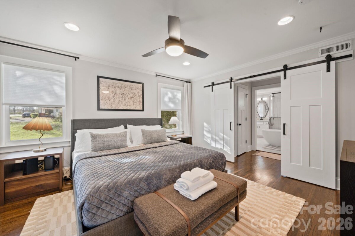 A rare combination of vintage character and true modern living! This beautifully preserved and fully renovated 1947 bungalow tucked inside one of the city's fastest-growing and most exciting neighborhoods, just minutes from the energy of Uptown Charlotte. Renovated in 2018, the home features original richly refinished hardwood floors and a bright open-concept layout designed for comfortable everyday living. The chef's kitchen is equipped with a gas range, newer appliances, sleek granite countertops, and a cozy window seat for that morning coffee or quiet moments at home. Very spacious primary suite complete with an en-suite bath designed to impress! A deep soaking tub and a rainfall waterfall showerhead deliver a daily luxury experience without ever leaving home. The updates extend upstairs with 2 bedrooms and a full bathroom included in the 545 sq ft of heated and cooled space. The fully finished basement with its own private entrance is where this home becomes truly extraordinary. Whether you envision a wonderful guest retreat for friends and family, a private home office, a multigenerational living space, or short or long-term rental suite, the flexibility here is virtually unmatched at this price point near Uptown Charlotte. Every finish speaks to intentional, high-quality renovation work completed, meaning all the big-ticket items have already been done for you. Ample off-street parking (at least 8 parking spaces), multiple EV charging stations, indoor & outdoor living, further enhances the living and hosting potential. This neighborhood is in the middle of a remarkable transformation. Neighboring streets are seeing new construction, rising values, and growing demand from Charlotte's expanding community. Get ahead of the curve just 6 minutes from Bank of America Stadium, South End's light rail corridor, the best restaurants in Charlotte, and everything that makes city living worth it. This combination of character, renovation quality, income potential, and proximity to Uptown simply doesn't come around often. Whether you're a first-time buyer, savvy investor, or professional craving character, walkability, and value appreciation, welcome to one of Charlotte's best-kept secrets!