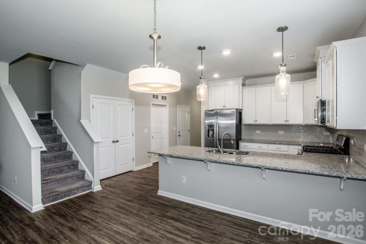 This newer built home offers comfort, luxury, and convenience. Close to restaurants, shopping and public lake access! The home boosts 4-beds, 3-baths & 2 car garage. Desirable main level primary suite, which is your personal retreat as well as another bedroom that can be used as a bedroom, office, flex or more then you find a beautiful kitchen with granite, tile backsplash, SS appliances, gas stove, open and bright great room that leads out to concrete patio. Upstairs you will find two spacious bedrooms, a full bath and attic storage. Lawn mowing is included in the HOA dues and there is even a community pool!