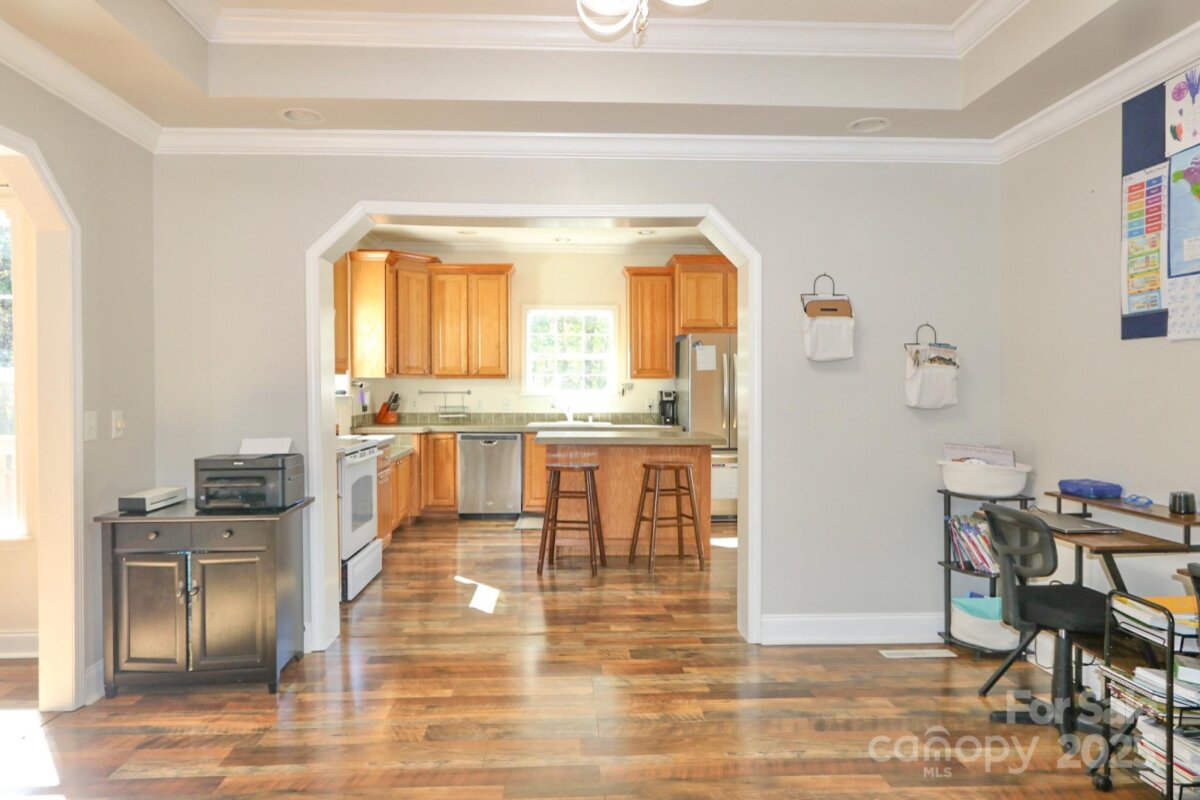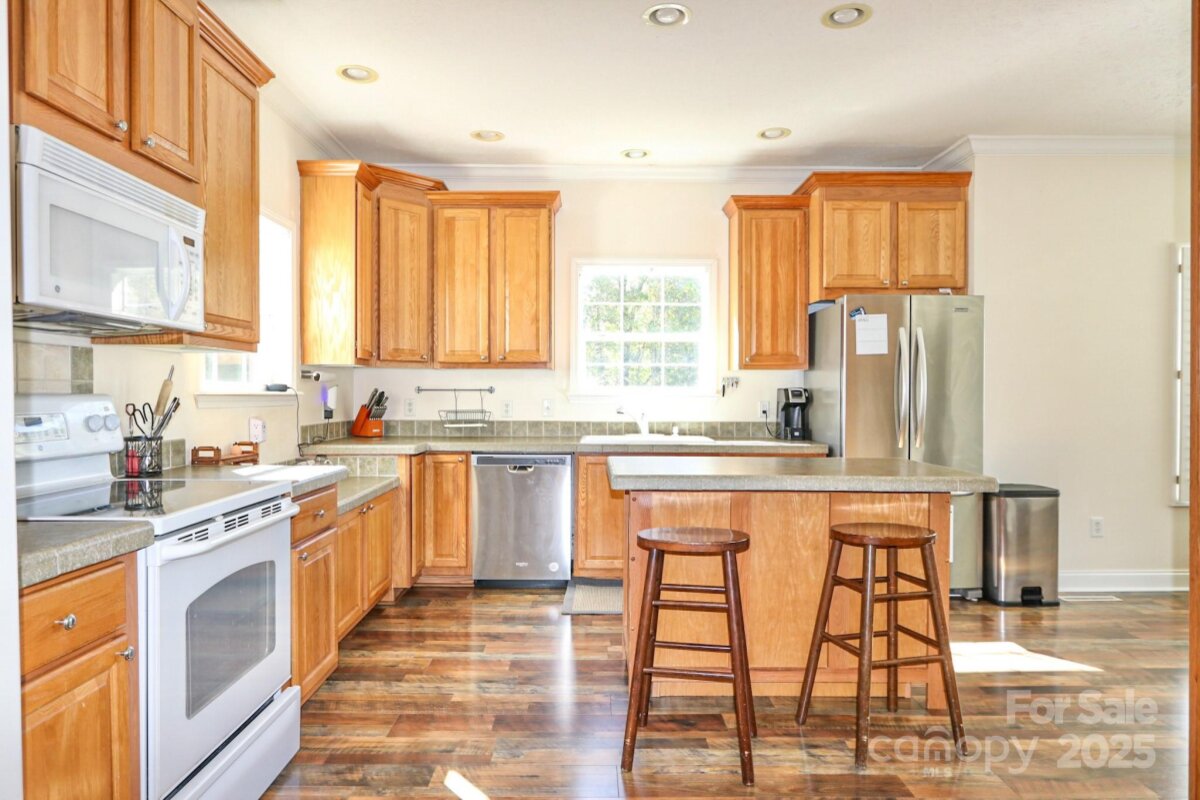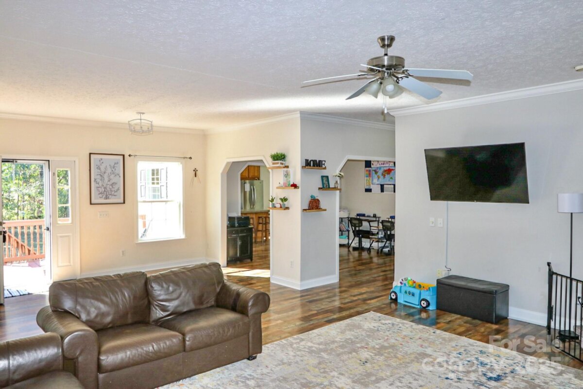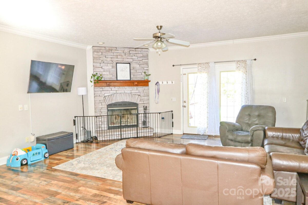 DON'T WAIT...Discover this spacious 3BR/2BA home on 2.2 peaceful acres! Enjoy country living with easy access to Highway 421. Step from the front wood deck into bright, open spaces featuring neutral colors, crown molding, and updated wood flooring throughout the main living areas and bedrooms. The large living room showcases a beautiful stone wood-burning fireplace. A separate dining room is perfect for gatherings, and the spacious kitchen offers an island, ample cabinet space, and a sunny breakfast nook. Refrigerator conveys with the home. The primary suite provides a relaxing retreat with dual vanity, walk-in shower, jetted garden tub, and two walk-in closets. Additional highlights include a separate laundry area, 2-car attached garage, and a large unfinished walk-in attic ideal for future expansion (1600 sq ft). Enjoy the outdoors on the large back deck overlooking the spacious yard—complete with chicken coop and hen house that remain with the property. Schedule your showing today!