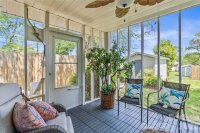 This charming bungalow offers the perfect blend of comfort and character. A welcoming covered front porch invites you in, while the screened-in back porch provides a peaceful spot to relax and unwind. The home also features a convenient porte-cochère for added functionality. Inside, you’ll find three cozy bedrooms and a full bathroom, along with a beautifully updated kitchen featuring new countertops and sleek stainless steel appliances—perfect for everyday living and entertaining alike. The spacious primary bedroom includes a generous 8' x 11' walk-in closet. The third bedroom is currently being used as a dining room, offering flexibility to suit your needs. The armoire will be reinstalled in that room prior to closing. Outside, the spacious yard offers plenty of room to enjoy the outdoors and includes two storage sheds, providing ample space for tools, hobbies, or extra storage. New Vapor barrier March 2026; Kitchen and bath renovated within the last 5 years: New roof 2018; New HVAC 2023;Water Heater 2021