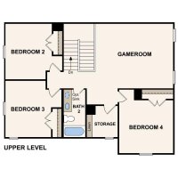 The Calderwood at Grants Landing offers two floors of comfortable living space, with a main-floor layout that’s perfect for entertaining. Toward the front of the home, a secluded bedroom and full bathroom are located right off the foyer. Beyond the foyer, a well-appointed kitchen—boasting a center island and corner pantry—looks over a great room and dining area with patio access. Additional main-floor highlights include a downstairs primary suite—with its own attached bath and expansive walk-in closet. Upstairs, you’ll find a spacious game room—which you can option as a bonus room or additional secondary bedroom—a full bath, three secondary bedrooms and generous storage space.