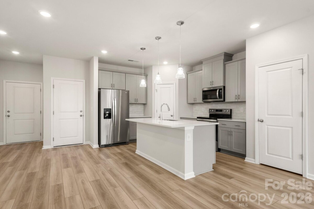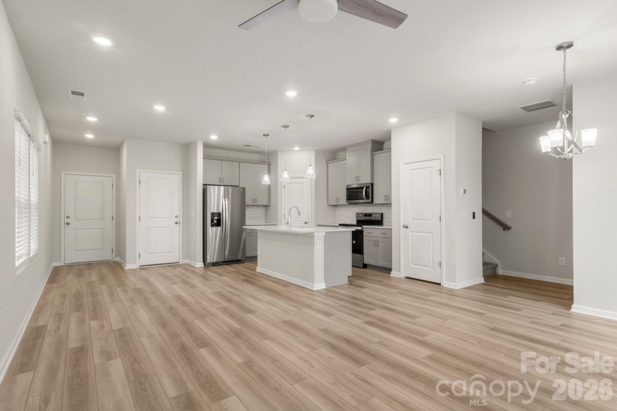 CUTE End Unit Townhome refreshed and ready for you! Walk into the unit onto LVP flooring throughout the entire first floor! The Foyer entry will bring you right into the heart of the home, the kitchen! Here you will find a pantry, STUNNING custom cabinetry and tile backsplash, Island w/bar seating, and SS Appliances! Entertain guests at the dining area or Great Room, both conveniently located close by thanks to the OPEN floorplan! UP: Upstairs, you will find more room for entertaining or an office space in the roomy loft that hosts plush carpeting, as does all the bedrooms! The Primary Suite is AWESOME - big in size, large walk-in closet, and full bathroom w/dual vanity, and walk-in shower! The additional bedrooms are ample in size and share the additional bathroom w/ single vanity and tub/shower combo. Laundry Room is also upstairs. Small Patio and Storage Unit outside. Come make this townhome your home today!