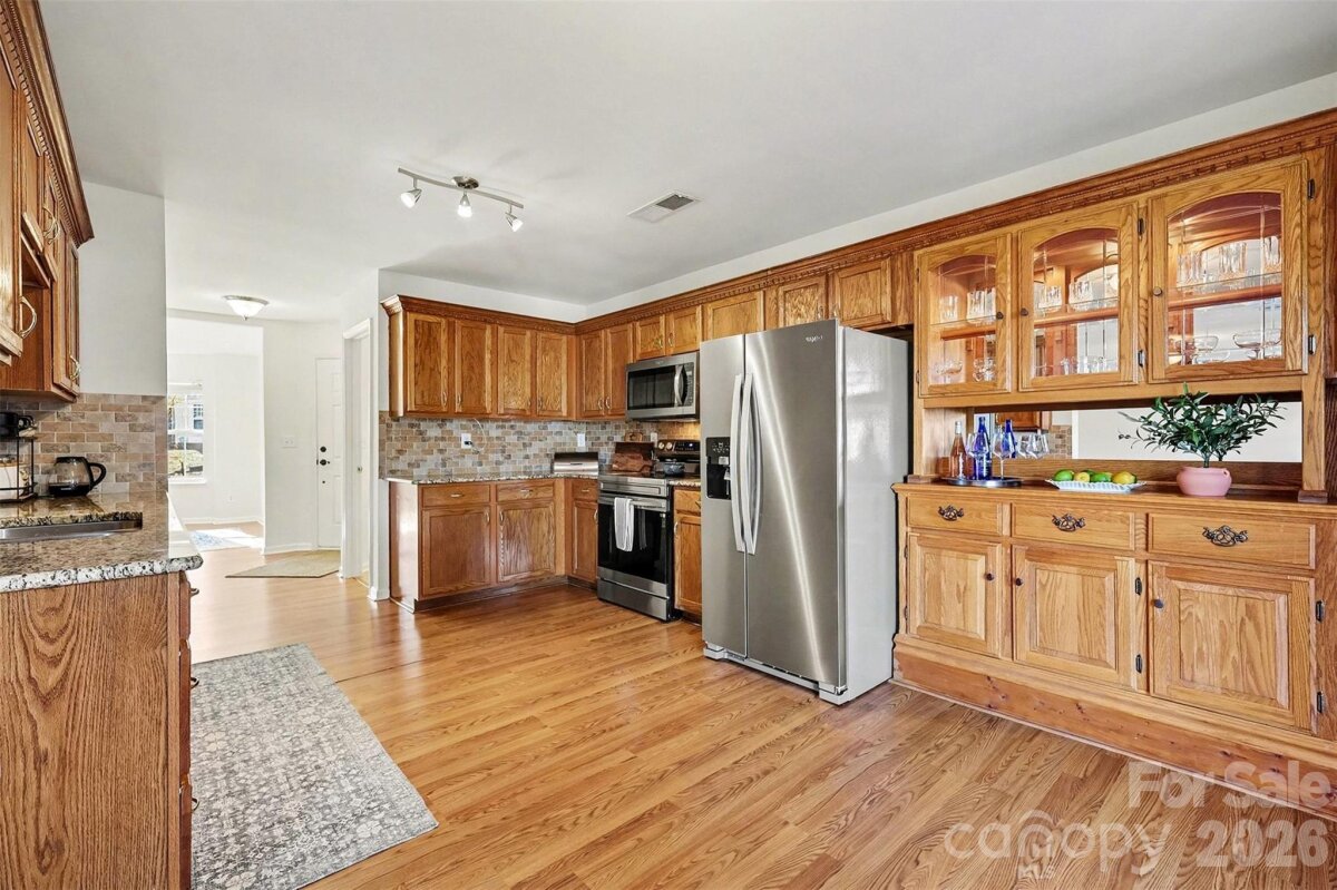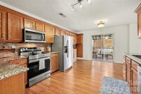 This well-maintained 3-bedroom, 2.5-bath two-story home offers a functional layout with stylish touches throughout. The main level features a bright, open living area with a cozy fireplace that flows easily into the dining space and kitchen. The kitchen is equipped with ample cabinetry, granite countertops, a tile backsplash, and stainless steel appliances, providing both practicality and charm. Upstairs, the primary bedroom offers a comfortable retreat with a private en-suite bath featuring a dual vanity and tub/shower combination. Two additional bedrooms provide flexibility for guests, office space, or additional living needs and share a full hall bath. Outdoor living includes multiple deck areas and a fenced backyard, ideal for relaxing or entertaining. A one-car garage, tasteful lighting, and neutral finishes throughout add to the home’s appeal. Conveniently located near shopping, dining, and major roadways, this property offers comfortable living in a desirable Charlotte location.