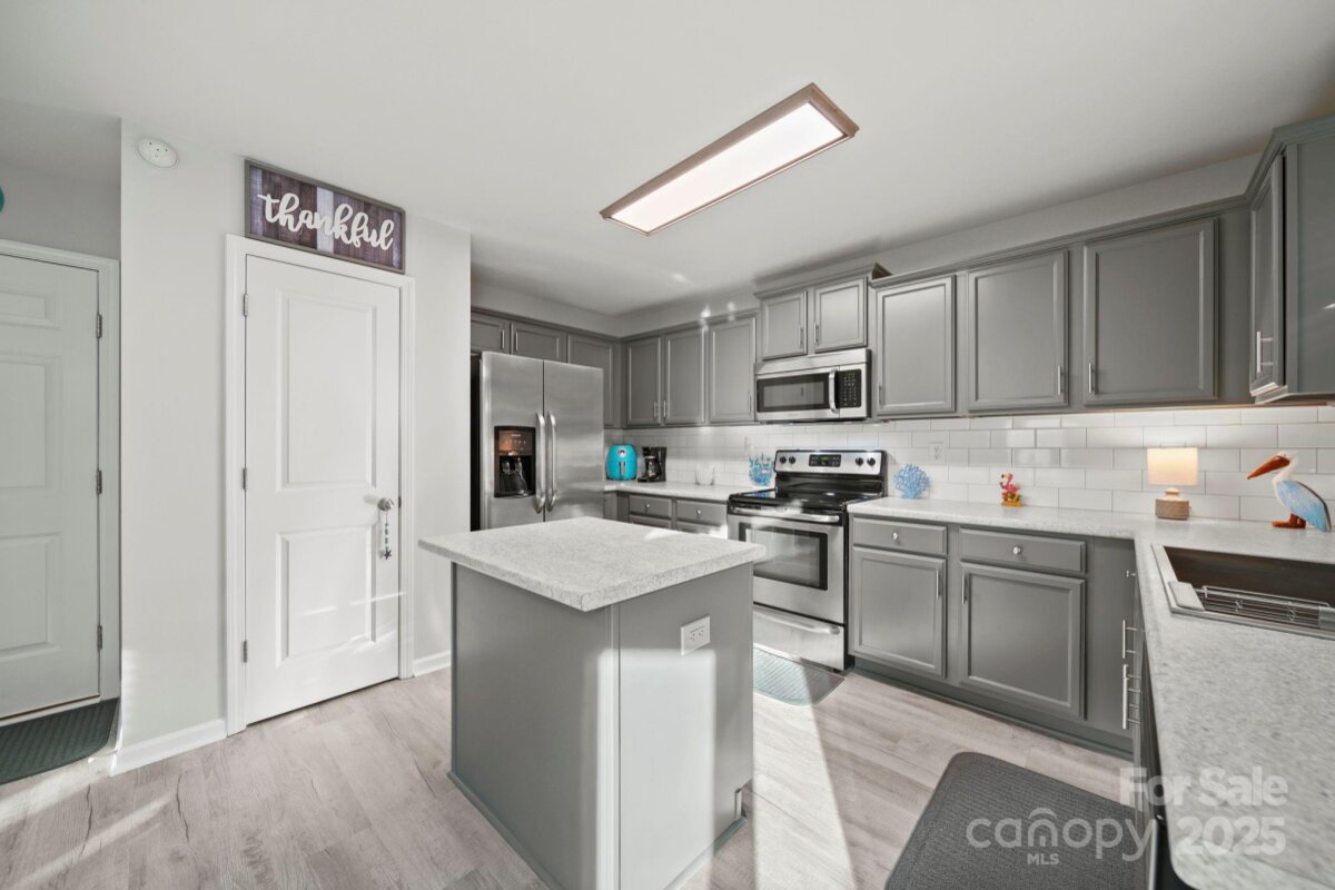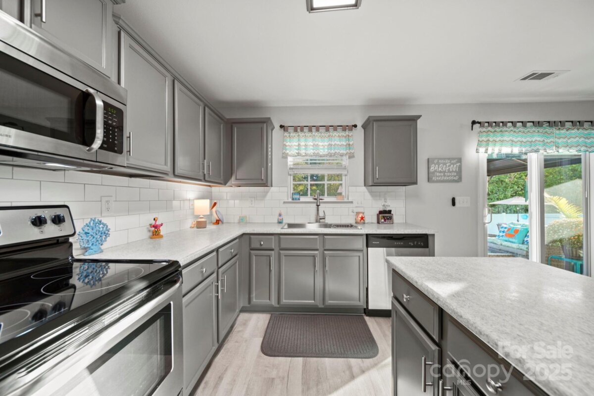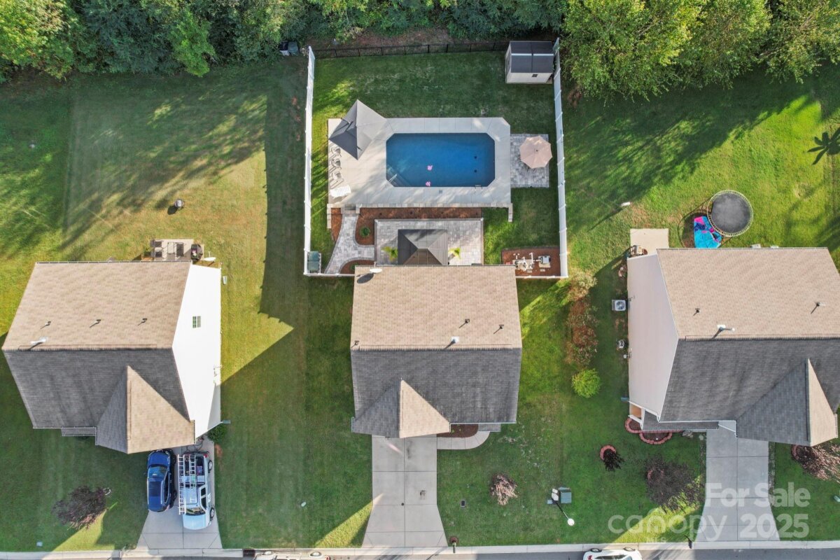 Step inside this immaculate, light-filled home and prepare to be charmed! The open-concept living space creates a wonderful flow, perfect for entertaining or relaxing. Modern eat-in kitchen with stainless steel appliances, and beautiful laminate wood flooring throughout the main floor offer convenience and style. Upstairs you can retreat to a spacious primary bedroom, featuring an ensuite bathroom and a large walk-in closet with plenty of storage space. Down the hall, you'll find two additional bedrooms, offering flexibility for guests, a home office, or a growing family. While the interior is beautiful, the show stopper is found outside! Imagine spending your afternoons by your private pool, set within a secure, fenced-in backyard, lined at the back by mature trees. The pool is heated, so you can enjoy it for many months of the year. The large patio is the ideal spot for summer BBQs, outdoor dining, or enjoying your morning coffee. This backyard is ready to be your favorite escape. Proximity to Crowders Mountain allows for easy access to weekend hikes and stunning views. Commuting is also easy with quick access to to I-85, and you're just minutes from everything Gastonia has to offer, from dining and shopping to parks and entertainment. Don't miss the chance to make this lovely property yours!