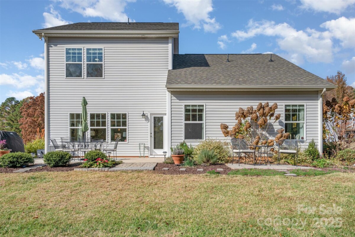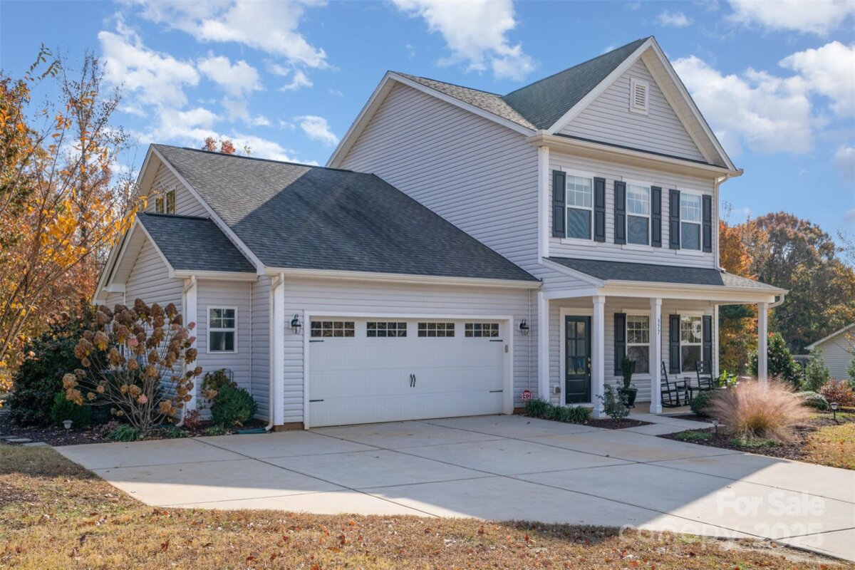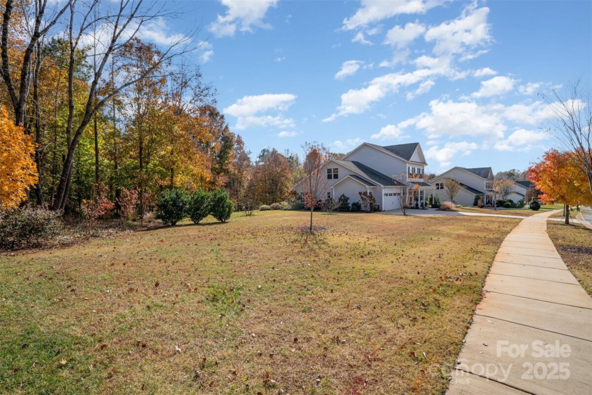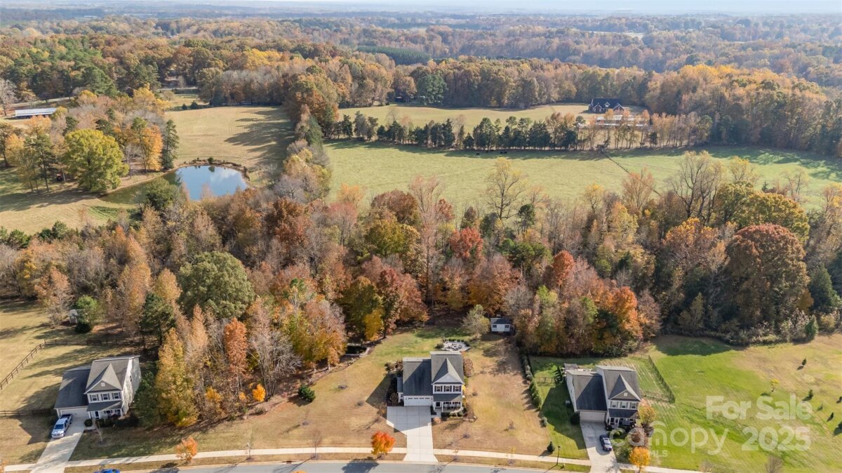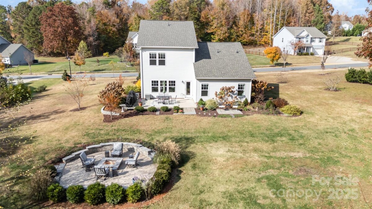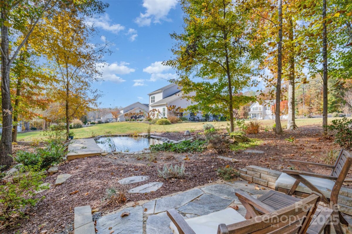 OFFER DEADLINE: 11/17/25 at 5:00 PM. Peaceful. Private. Perfect. Surrounded by nature on nearly an acre in a quiet, low-traffic area with sidewalks and wide lots, this home delivers thoughtful design and relaxed outdoor living. Enjoy sunrise coffee and sunset views from the back patio, framed by mature trees. Inside, abundant windows fill open spaces with light, highlighting beautiful plank flooring and upgraded trim throughout the main living areas. The kitchen features a white quartz island, contrasting black granite countertops, and stainless appliances including a Café convection double oven and French door refrigerator. The open layout flows into the great room with wooded views. The main-level primary suite offers granite double vanities and a large walk-in closet. Upstairs includes a spacious bonus room with plank flooring, two additional bedrooms, and a French-doored flex room for work or play. Outdoor living shines with a large paver patio and grill station, a fire pit gathering space, and a tranquil water feature retreat with a bridge leading to a seating area overlooking the waterfall and pond. Additional features include an oversized garage with utility sink and extra storage, plus a 10' x 16' shed. Backing to wooded HOA land with a creek, this home feels worlds away—yet it’s convenient to I-485, less than 3 miles east of Mint Hill, and just 20 miles from Uptown Charlotte.
