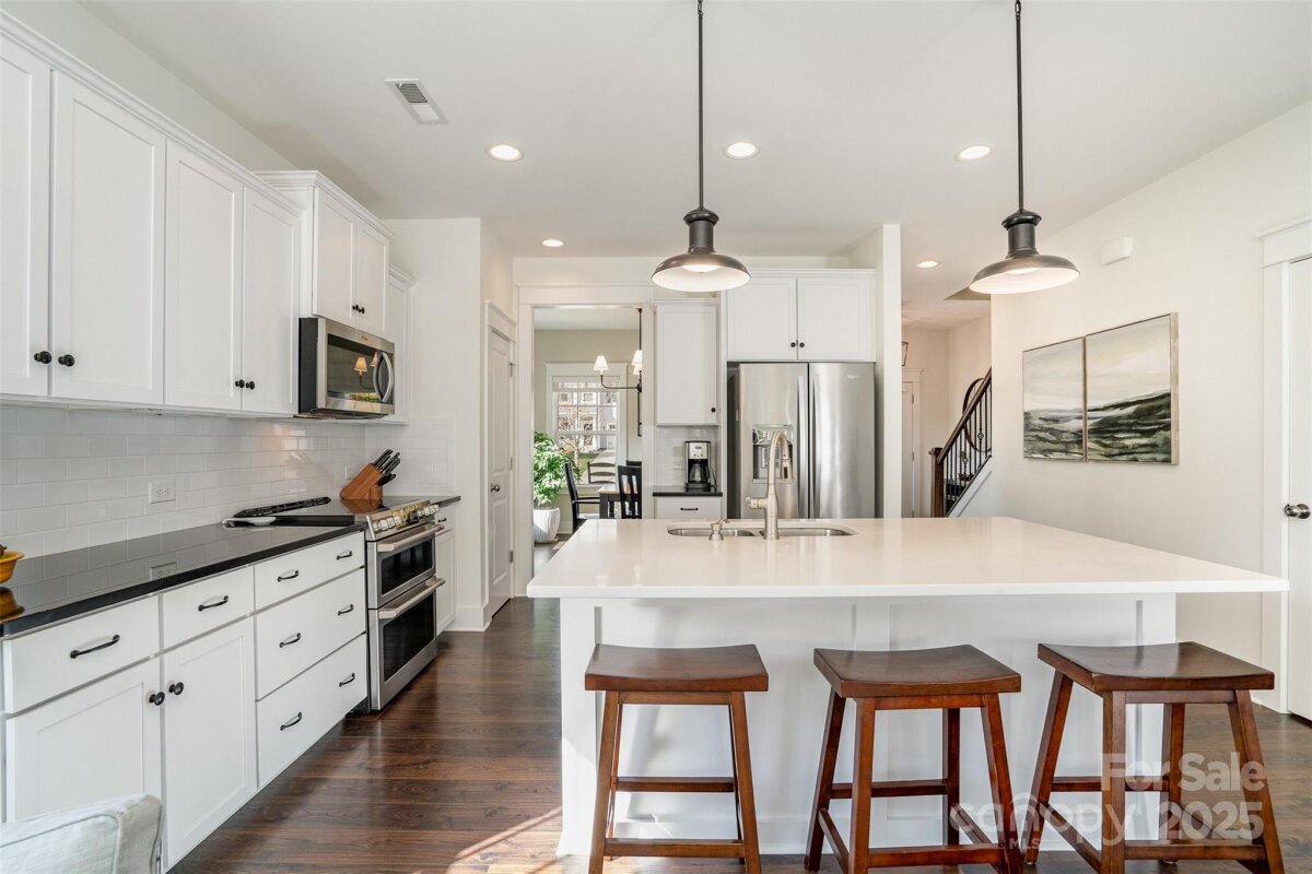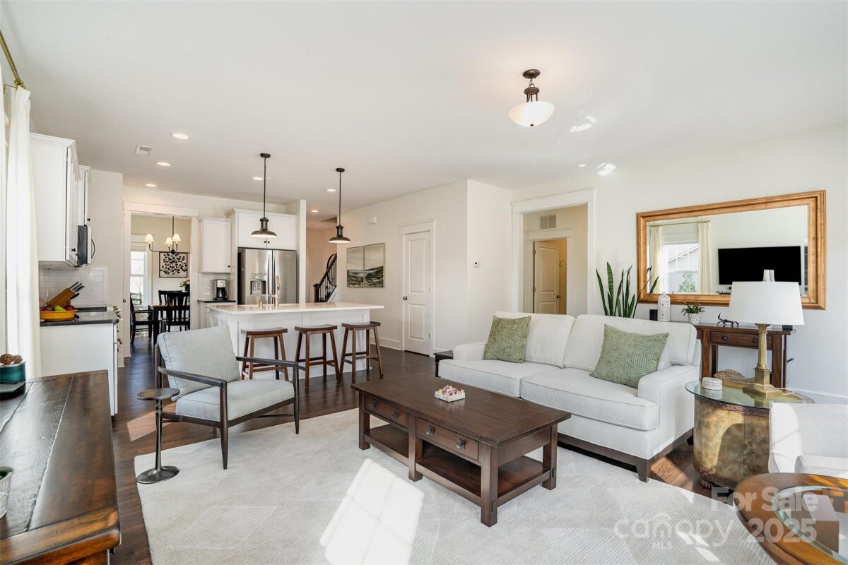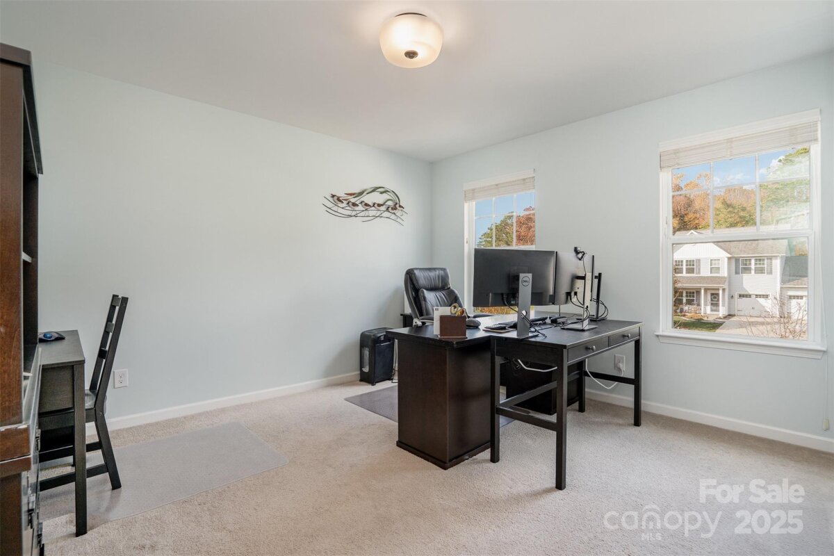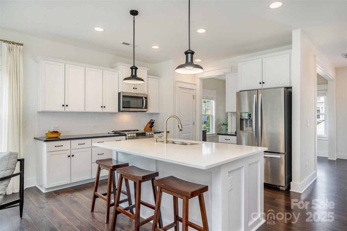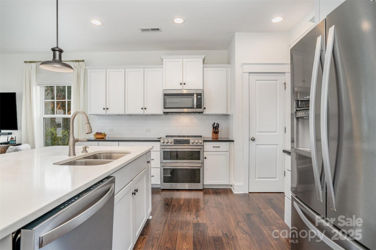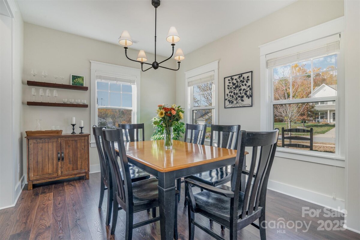 OFFER DEADLINE: 11/17/25 at 5:00 PM. Peaceful. Private. Perfect. Surrounded by nature on nearly an acre in a quiet, low-traffic area with sidewalks and wide lots, this home delivers thoughtful design and relaxed outdoor living. Enjoy sunrise coffee and sunset views from the back patio, framed by mature trees. Inside, abundant windows fill open spaces with light, highlighting beautiful plank flooring and upgraded trim throughout the main living areas. The kitchen features a white quartz island, contrasting black granite countertops, and stainless appliances including a Café convection double oven and French door refrigerator. The open layout flows into the great room with wooded views. The main-level primary suite offers granite double vanities and a large walk-in closet. Upstairs includes a spacious bonus room with plank flooring, two additional bedrooms, and a French-doored flex room for work or play. Outdoor living shines with a large paver patio and grill station, a fire pit gathering space, and a tranquil water feature retreat with a bridge leading to a seating area overlooking the waterfall and pond. Additional features include an oversized garage with utility sink and extra storage, plus a 10' x 16' shed. Backing to wooded HOA land with a creek, this home feels worlds away—yet it’s convenient to I-485, less than 3 miles east of Mint Hill, and just 20 miles from Uptown Charlotte.