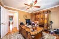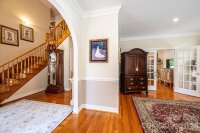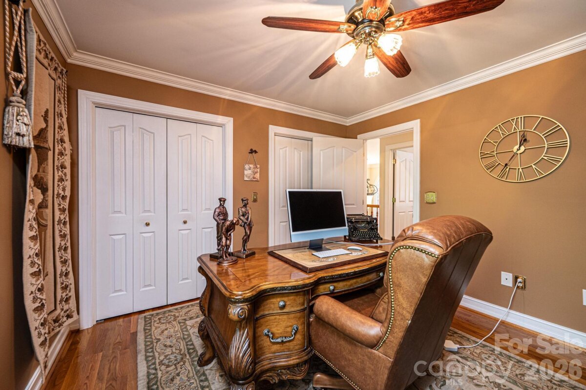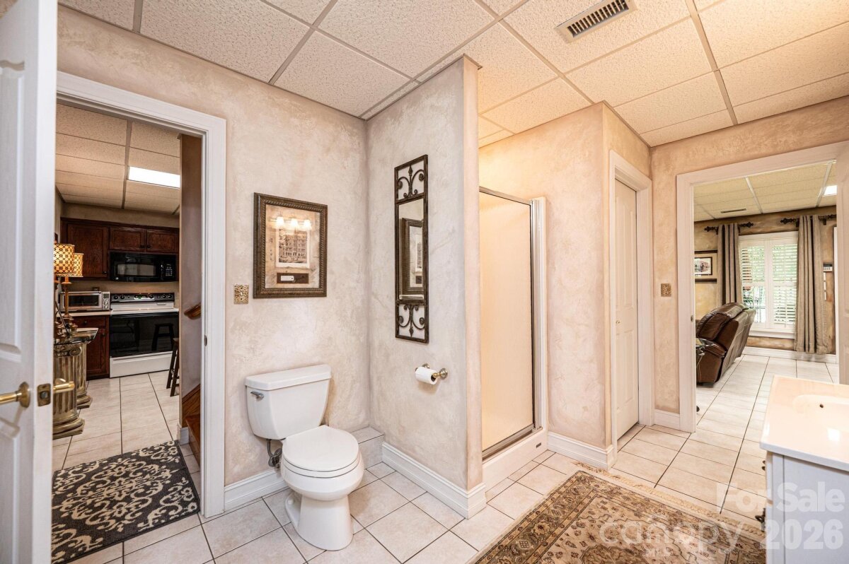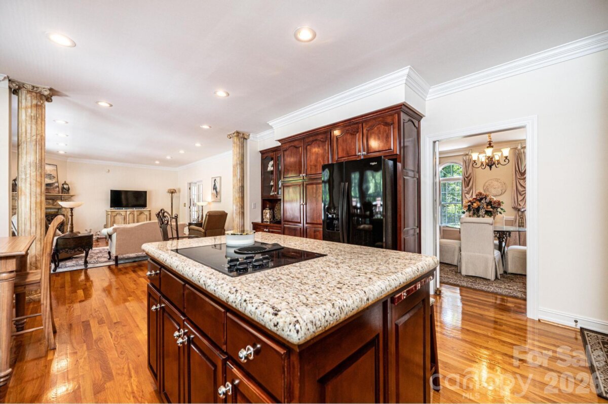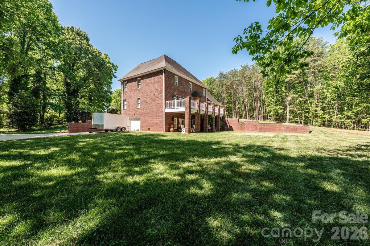 This beautifully designed, custom built & one owner 3BR, 3.5BA home with a bonus room/office offers the perfect blend of space, comfort, and flexibility for multi-generational living. The main level features a convenient half bath, while the upper level includes two full baths. The fully finished lower level adds another kitchen, rec room/den and full bath that is ideal for extended family or guests. Enjoy peaceful views from the deck overlooking approximately 3.5 private acres, or relax on the covered lower-level porch complete with ceiling fans. With separate driveways for both the main and lower levels, this home offers added convenience and privacy. Inside you will find hardwood flooring throughout the main and upper levels, tile flooring in the lower level and high ceilings that create an open, airy feel. The main and lower levels feature a gas log fireplace. The kitchen is a standout with beautiful cabinetry, granite and a center island with a cooktop that's down drafted. All appliances in both kitchens remain. All hardwood & ceramic tile - No Carpet!