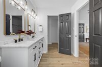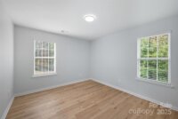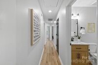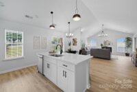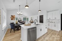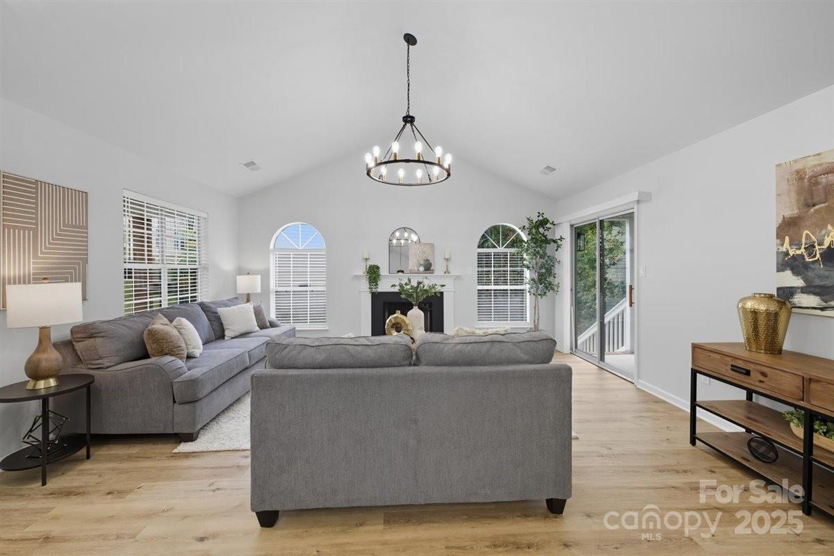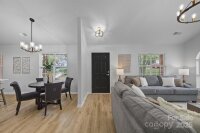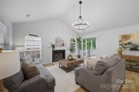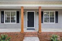 Welcome to this beautifully updated one-story home, perfectly situated on a peaceful cul-de-sac in the desirable Matthews area. This charming property features a welcoming covered front porch with rustic wooden posts and a recently refreshed exterior. Step inside to discover a bright, open-concept floor plan with vaulted ceilings, a cozy fireplace, and stunning wood-look flooring throughout. The modern kitchen is a chef's delight, boasting a large quartz island with a breakfast bar, sleek white cabinetry, and stainless steel appliances. The spacious living and dining areas flow seamlessly, providing an ideal space for entertaining. Retreat to the primary bedroom, which offers a private ensuite bathroom with a double vanity and a skylight, a walk-in closet, and a stunning accent wall. Enjoy the outdoors on the screened-in back porch, which provides a serene escape overlooking the private, wooded backyard. This home combines modern updates with classic charm and is a true must-see.