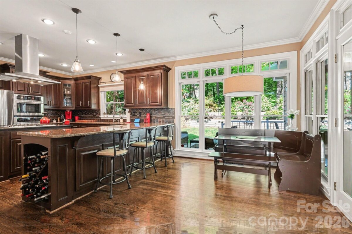 Tucked away on a private wooded cul-de-sac lot of nearly half an acre, 3807 Degrasse Drive offers a rare blend of privacy, character, and functional living space in the sought-after Radbourne community. This 4 bedroom, 2.5 bath home delivers the charm of an established neighborhood with the room and flexibility today’s buyers want. Inside, you will find refinished wood floors, tray ceiling details, built-ins, and a spacious family room with gas log fireplace that creates a warm and inviting everyday living space. The well-appointed kitchen features granite countertops, island seating, gas cooktop, wall oven, microwave, range hood, wine cooler, tile backsplash, and ample prep space, ideal for both everyday living and entertaining. Formal dining, a breakfast area, and a bright enclosed sunroom add warmth, versatility, and room to spread out on the main level. Upstairs, the generous primary suite offers tray ceiling detail, walk-in closet, and an updated bath. All bathrooms were updated in 2019. Additional improvements since ownership include a new upstairs A/C in 2024, new hot water heater in 2024, sunroom enclosed in 2023, refreshed insulation in 2026, insulated garage door, and updated appliances. Outside, the backyard has been expanded through extensive tree removal, stump grinding, and grading to create more usable outdoor space. Mature landscaping, irrigation, deck space, and a rear-load 2-car garage add to the overall appeal. Radbourne is known for its mature trees, established setting, and amenities including a clubhouse, pool, tennis courts, playground, pond, sidewalks, and trails, with convenient access to Clark Creek Greenway, UNC Charlotte, I-77, I-85, I-485, shopping, dining, and everyday conveniences. An active HOA further enhances the lifestyle with holiday events, clubs, and organized neighborhood activities.