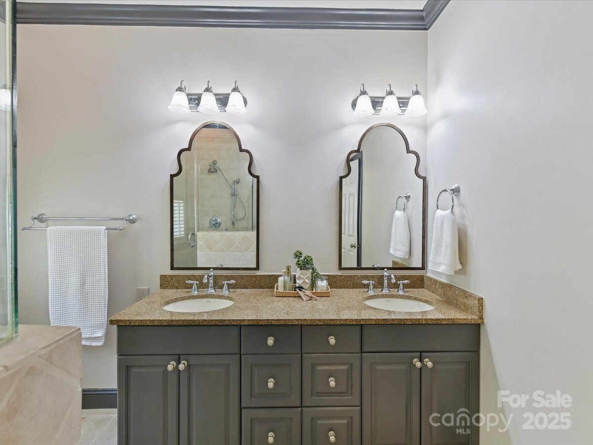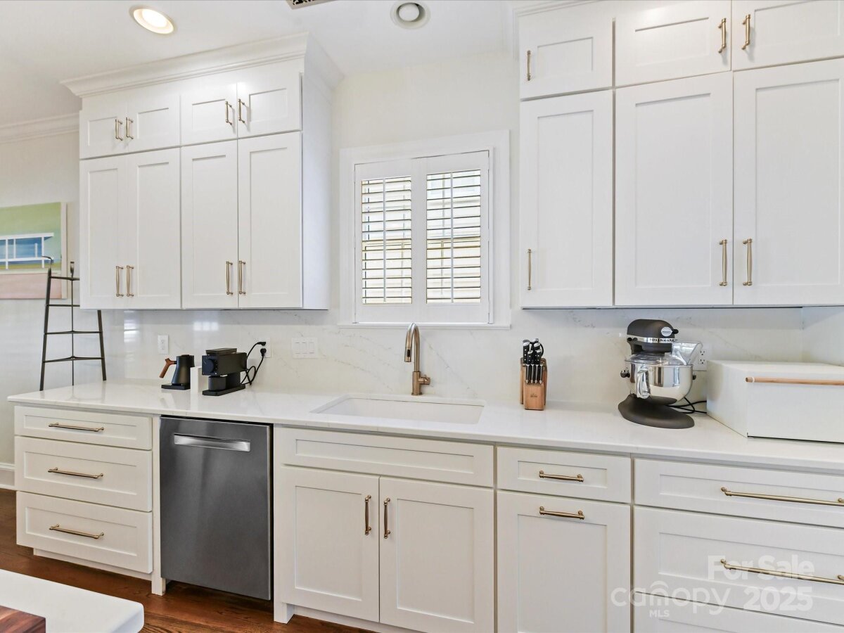Stunning home with thoughtful, high end updates. As you enter you're greeted by bright, fresh white walls and gracious moldings; the great room is lofted and airy with a cozy fireplace and plantation shutters. The kitchen is amazing with beautiful cabinetry, high end appliances and a spacious island. You will want to spend all your time outdoors where the fenced yard boasts a massive covered deck with TV mount and outdoor kitchen. The primary bedroom on the main level is a true retreat with a warm bathroom and oversized walk in closet. Going upstairs, the stair treads and all floors were replaced with wood for an elevated feel. The bonus room is great for office, relaxation or play and the bedrooms offer great space. Minutes away from Park Road Shopping Center, parks, shops and restaurants, this is an ideal location in Charlotte. Amazing schools and proximity to uptown Charlotte, I-77 and Southpark. Come make this home yours!