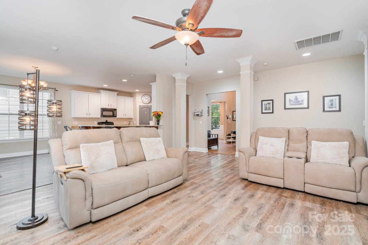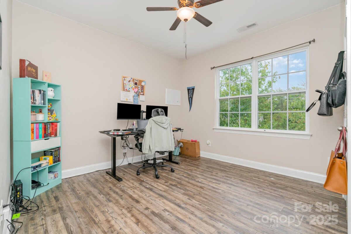 Welcome to 3815 Blazeprince Drive, a spacious 5-bedroom, 3-bath home in the sought-after Peach Orchard Estates community. Featuring nearly 3,000 sq. ft. of living space, this home offers a bright two-story foyer, formal dining, and an open family room that flows into the kitchen with granite countertops, 42-inch cabinetry, pantry, and breakfast area. A main-level guest suite with full bath is perfect for in-laws or visitors, while upstairs you’ll find a large primary suite with spa-style bath, three additional bedrooms. Outdoor living shines with a deck overlooking a private, wooded backyard. With community amenities including a pool, playground, dog park, and sidewalks, plus zoning to top Hickory Ridge schools, this move-in ready home blends comfort, function, and convenience in a prime Charlotte location. Roof is 2021 and HVAC units were both replaced in 2020.