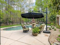 Experience unparalleled privacy and sophisticated living in this meticulously renovated full-brick estate, nestled on a rare 1.72-acre lot in the prestigious Providence Plantation. This home was completely redesigned and all new in 2004 and blends timeless architecture with modern luxury. The home features a chef’s dream kitchen with a massive center island, unbelievable storage, and premium appliances including a Sub-Zero built-in refrigerator and a Wolf cooktop and vent, beautiful, stained cabinetry with quartz countertops. The main level primary suite is a true sanctuary, boasting a grand 13' x 28' footprint that offers ample space for a private sitting area, morning bar, or just relaxing by the gas fireplace. The primary bathroom has just been completely renovated, and it is stunning, featuring a freestanding tub, large shower, 2 beautiful vanities and a large walk in closet. There are two additional fireplaces, a woodburning in the great room and gas fireplace in the living room. The upper-level features four additional spacious bedrooms (one with ensuite) and an additional full guest bath for comfort and privacy for the whole family. The oversized 3 car garage has additional storage, and an updated 2 BR, 1BA apartment with its own entrance, complete with LR, DR, full kitchen with white cabinetry and quartz countertops, laundry closet, and new LVP flooring. Step outside into resort-style luxury featuring a beautiful in-ground pool, full outdoor kitchen with bar under a pergola, a built-in TV behind the bar area, a wood burning fireplace, and a pool dedicated half bath for convenience. This is more than a home; it’s a lifestyle. Absolutely stunning from every angle!