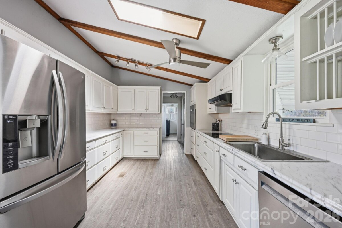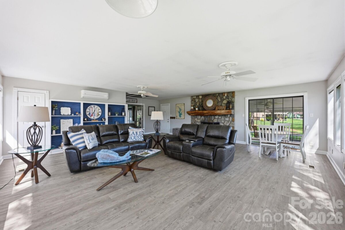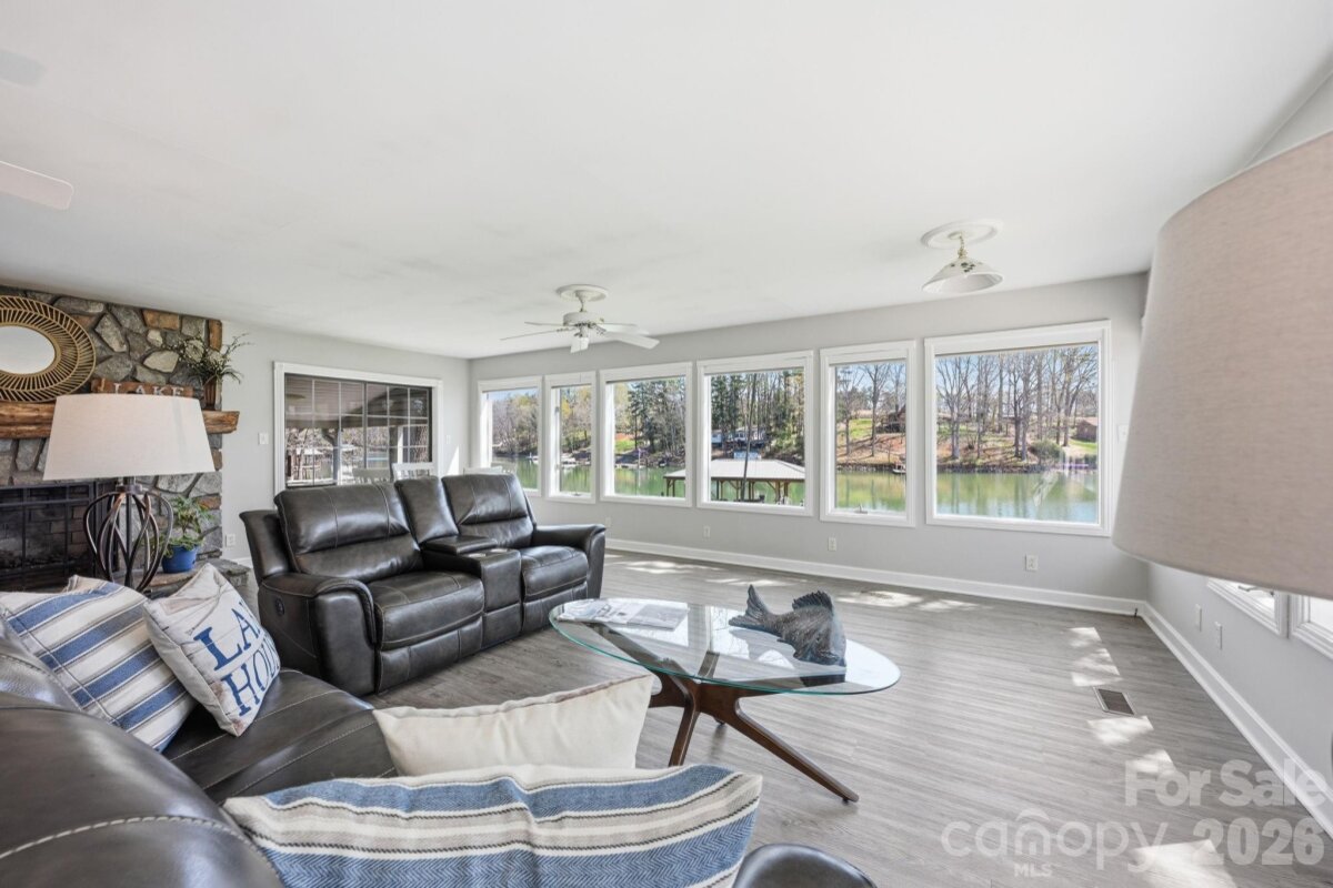 Welcome to your private waterfront retreat on the shores of Lake Norman, where breathtaking views, exceptional outdoor living and rare shoreline features come together to create the ultimate lake lifestyle. With over 180 feet of shoreline, a grandfathered boathouse and private boat ramp, this .70-acre property in Sherrills Ford is truly a one-of-a-kind opportunity. Step inside this completely remodeled, one-level home offering three bedrooms and two and a half baths, thoughtfully designed for both comfort and style. From the covered front porch, you’re welcomed into a bright, open concept kitchen and dining area that seamlessly flows into a stunning living room perched above the water. Expansive windows frame panoramic views of Lake Norman, filling the space with natural light and creating a constant connection to the outdoors. A beautiful stone, wood-burning fireplace anchors the room, while direct access to the oversized covered porch invites effortless indoor-outdoor living. The kitchen is both stylish and functional, featuring stainless steel appliances, quartz countertops, white cabinetry, subway tile backsplash and multiple pantry spaces for ample storage. The main level offers a well designed split-bedroom layout, including two secondary bedrooms with a shared full bath and a private primary suite complete with outdoor access, a walk-in closet and a beautifully appointed bathroom with double vanity and walk-in shower. A conveniently located laundry room and half bath complete the interior. Step outside and experience what truly sets this property apart. The gently sloping yard leads to the water’s edge, where you’ll find a new covered dock with composite decking, ideal for relaxing, entertaining or enjoying long days on the lake. Multiple outdoor living spaces, including a covered lakeside porch offer the perfect setting for gatherings or quiet evenings taking in the view. The grandfathered boathouse and private boat ramp provide unmatched convenience and value, making it effortless to enjoy everything Lake Norman has to offer. Don’t miss the basement level, featuring a workshop and two-car garage, perfect for storage, hobbies or lake gear. Whether you're looking for a full-time residence or the perfect lake escape, this property delivers an unparalleled waterfront lifestyle.