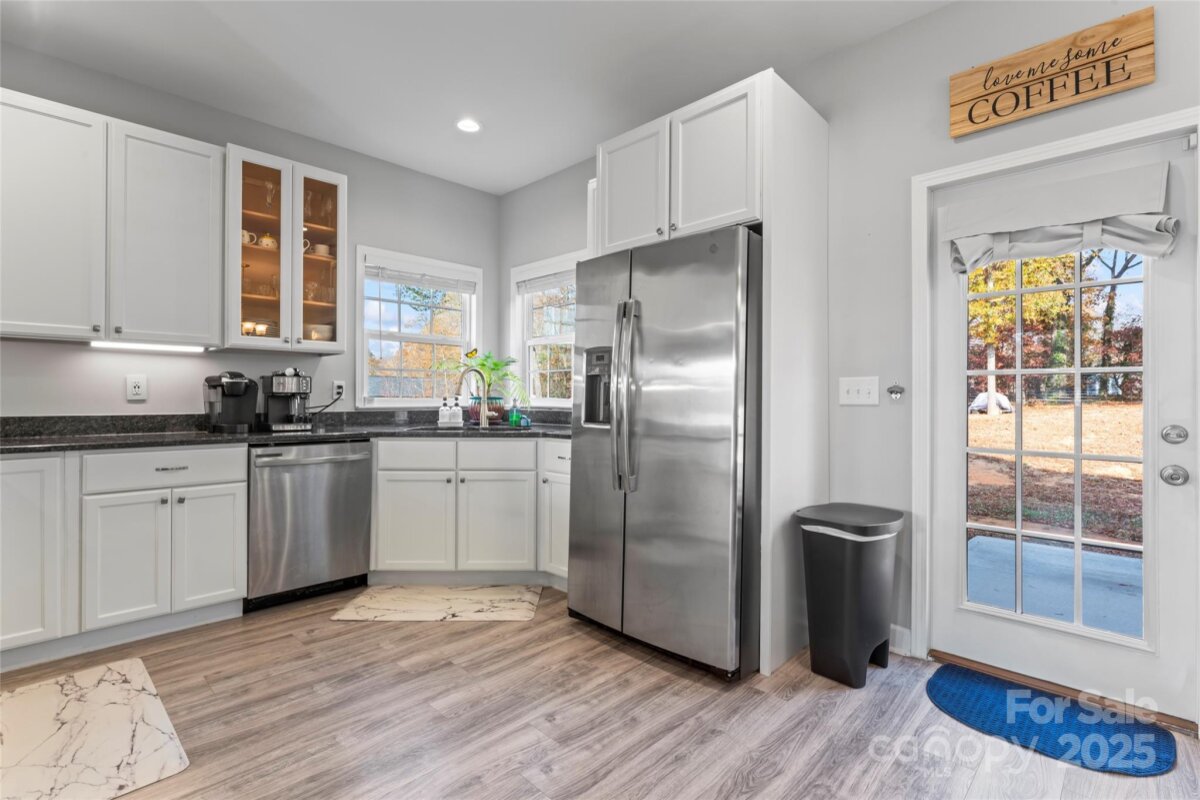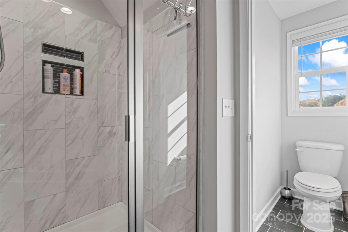 Charming home on almost 3/4 of an acre with gorgeous curb appeal! This beautiful home with massive front yard features an inviting large front porch! Inside you find a bright and open layout filled with natural light! The kitchen boasts white cabinetry, granite countertops and stainless-steel appliances making it an ideal space for cooking and entertaining that is open to the large family room! The primary suite is a true retreat with plenty of space to relax! The ensuite bath features a separate large garden tub, tiled shower, granite topped vanity with double sinks and walk in closet. Large spacious secondary bedrooms and bathroom separate from the primary suite makes this an ideal layout! Additional highlights include a walk-in attic and a bright spacious side load garage! Step outside to a tree-lined backyard complete with a patio and firepit perfect for relaxing and entertaining. This home offers the perfect blend of comfort, space, and convenience as it is located just minutes from shopping and everyday essentials and provides both privacy and accessibility.