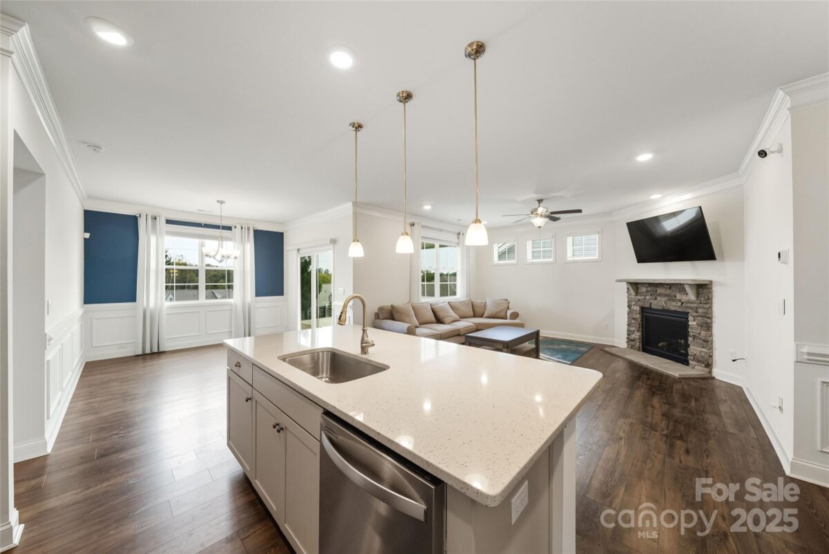 Discover this stunning D.R. Horton Bristol floor plan offering exceptional comfort and style in a quiet setting. Designed with convenience in mind, this 1.5-story home features 3 bedrooms and 2 full baths on the main level, (Primary on Main) plus a spacious loft, game room, bedroom, and full bath upstairs—perfect for guests or multi-generational living. The gourmet kitchen showcases Quartz countertops, gas oven, stainless appliances, tile backsplash, and a large island ideal for entertaining. Beautiful extensive moldings, granite vanities in all baths, and an open-concept great room, dining, and breakfast area create a bright, inviting flow throughout. Step outside to enjoy your own private retreat: a covered rear porch overlooking the professionally hardscaped patio with firepit and pavers, ideal for relaxing evenings or gatherings with friends. Additional upgrades include an on-demand tankless water heater, extended patio, and privacy landscaping. Located in a community rich with amenities—Clubhouse, Fitness Center, Pool, Playground, and Walking Trails—this move-in ready, one-owner home combines comfort, quality, and convenience in one perfect package.