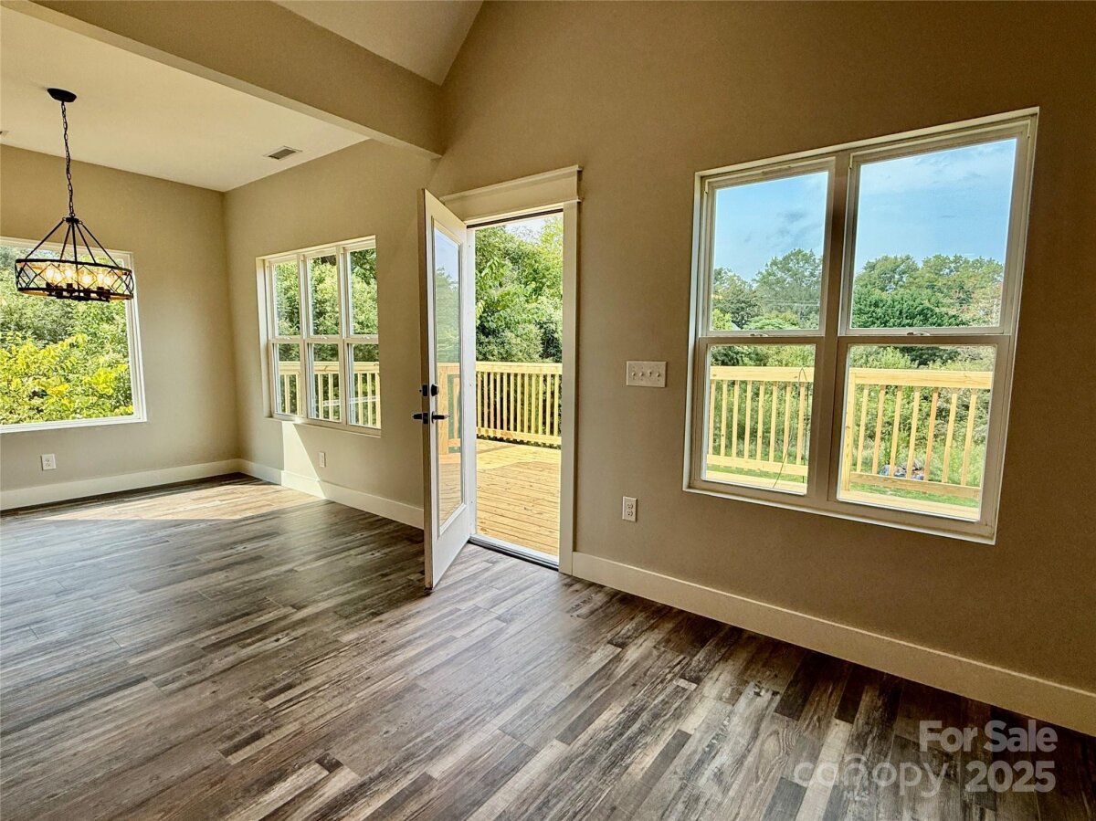 Absolutely beautiful new construction home, located in Forest City on quiet residential street! Gorgeous finishes throughout: LVT floors, granite countertops in the kitchen & bathrooms, 9' ceilings thru-out, and 12' ceiling in living room. Primary bedroom has en-suite bathroom with LUXURIOUS custom shower and TWO walk-in closets! This home has it all! Large back deck, plus unfinished basement with sewer roughed in. Do you want to add a kitchen, bathroom, or washer/dryer downstairs? It's possible! Rough-in for garage door downstairs also. This house is about 95% finished. The builder has just a couple of finishing touches to complete. Just a few blocks from the beautiful Thermal Belt Rail Trail too! Come out and see it today!!