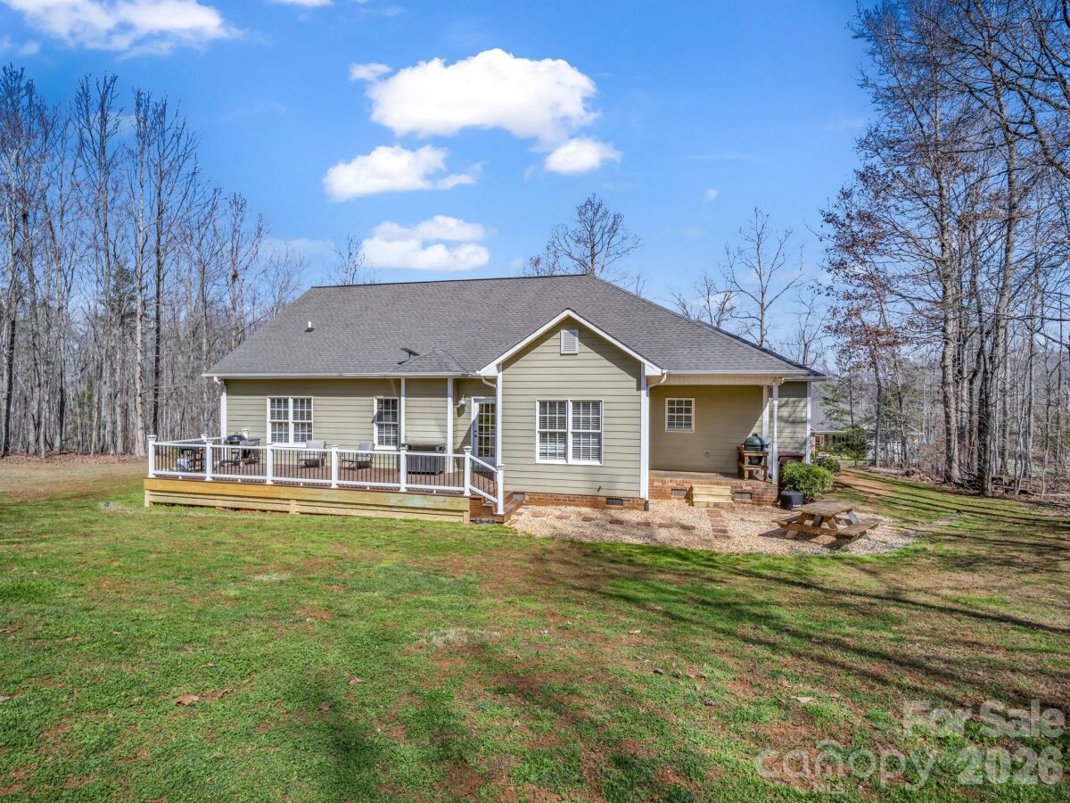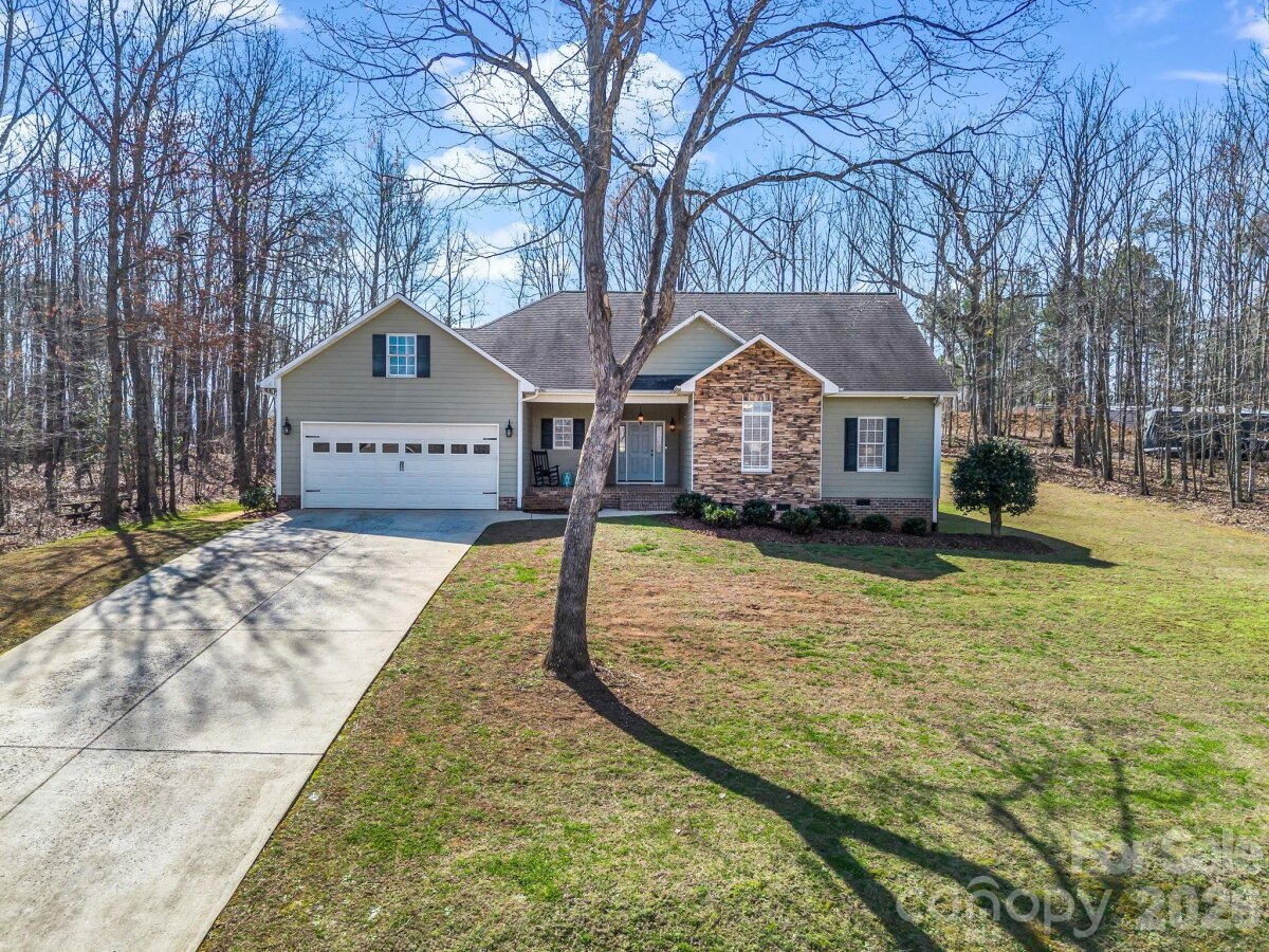Move-In Ready! This gorgeous 3 BR, 2 BA home is located in a small subdivision & includes two lots with a mountain view & is surrounded by trees. Freshly painted, this home has hardwood floors in kitchen, dining rm, family room, & hallway. It has an open floor plan with a beautiful tray ceiling in the family room and a gas log fireplace. The kitchen has lots of cabinets with undercabinet lighting and you'll love the beautiful stone backsplash! There's also two lazy susans and a pantry. Enjoy your meals at the breakfast bar or in the sunny dining area! All appliances including the washer & dryer are included! There's a small covered porch off the dining area & a large deck off the family room. The primary bedroom has an ensuite bath with double vanity & walk-in closet. There's pull down stairs for attic storage and a 2-car garage with a mini-split system for heat & air. Storage building in back yard. The extra lot has a gravel drive and would offer buyer lots of options. This country setting is only minutes from Forest City. Don't miss it!