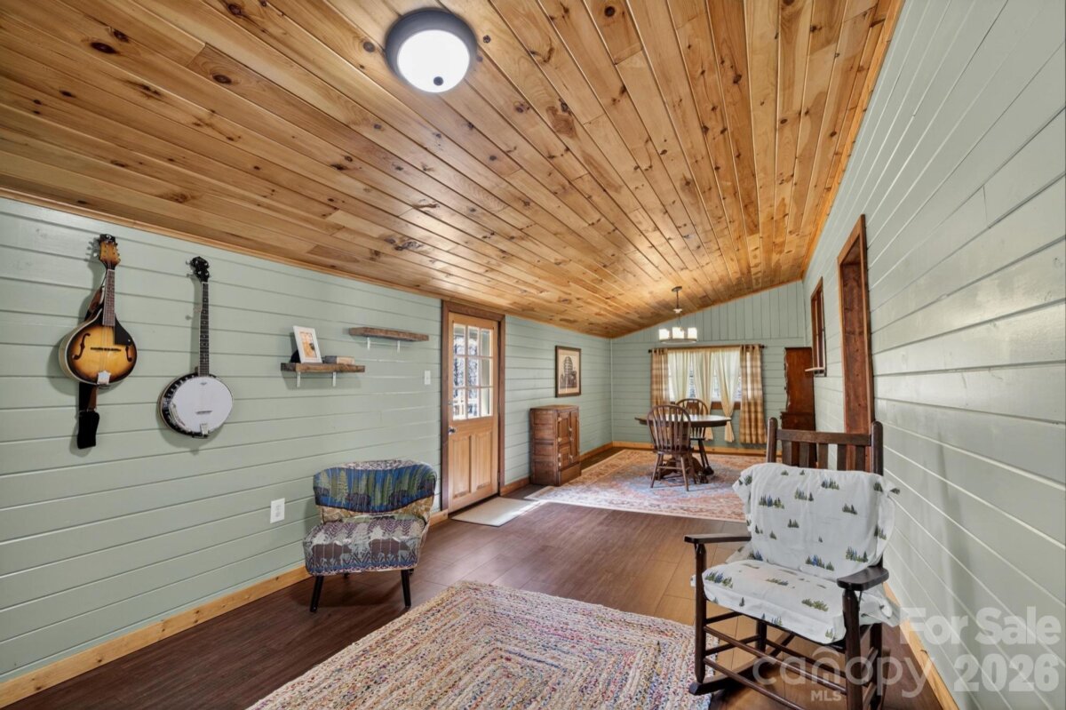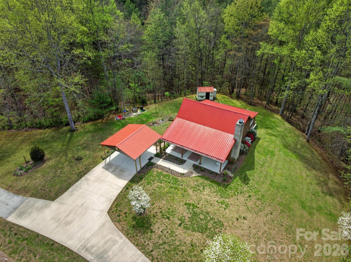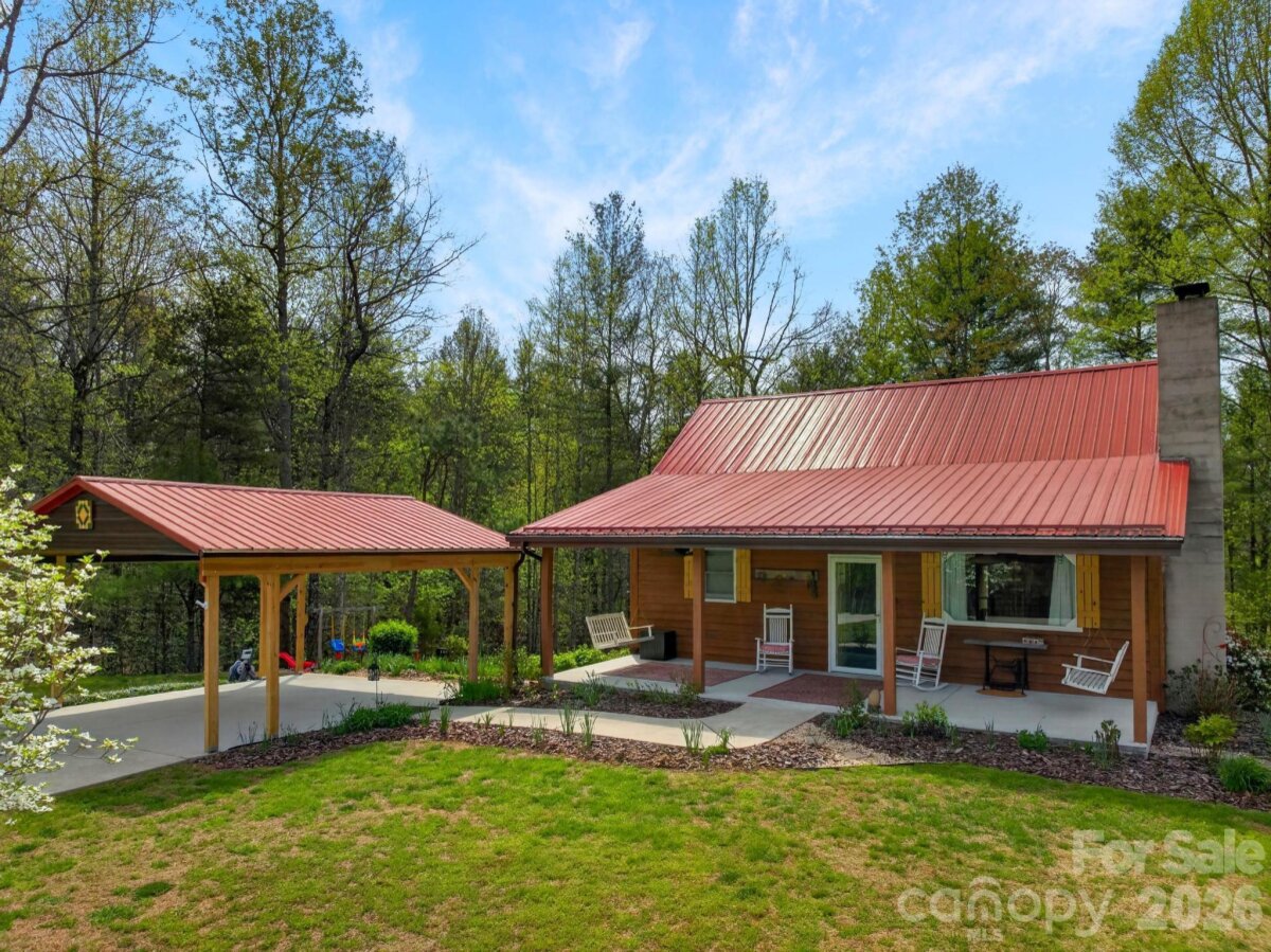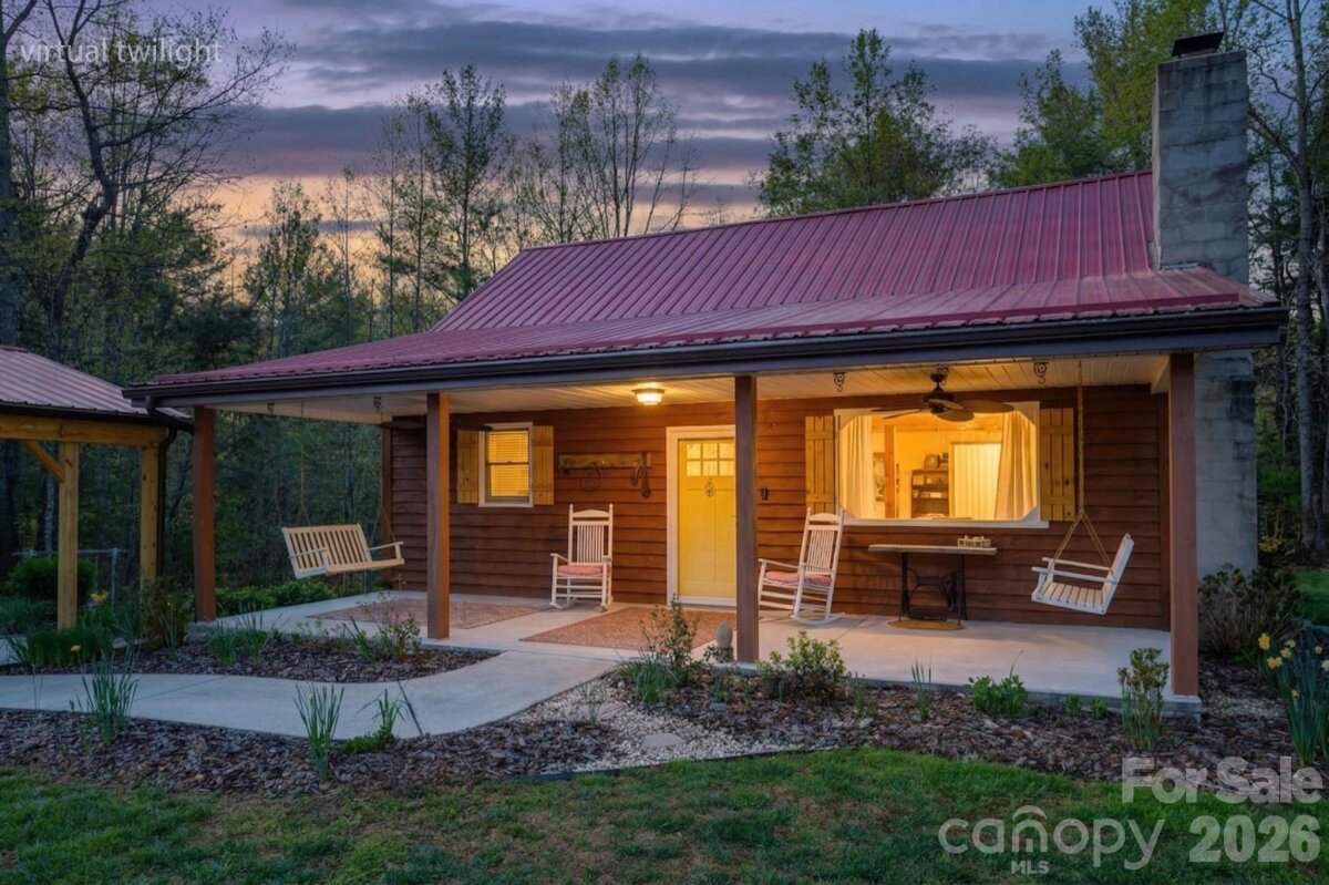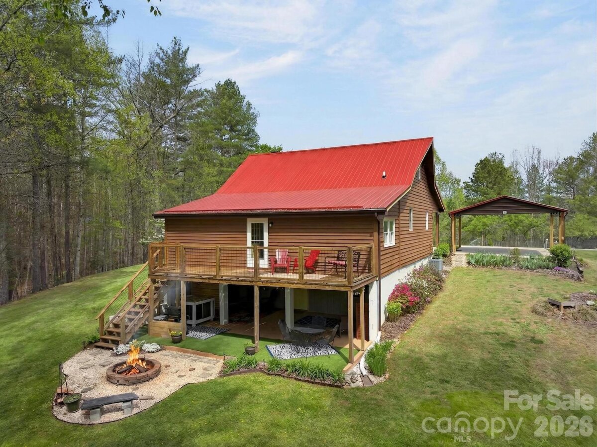 PICTURESQUE MOUNTAIN RETREAT NESTLED ON 4.74+/- ACRES WITH BREATHTAKING VIEWS! Carved out of the Foothills & Blue Ridge Mountains is the perfect gem with a beautiful landscape for a backdrop. Just like out of a story book, this gorgeously renovated mountain chalet offers a dreamy escape from the noise of the city. It is ideal for a peaceful retreat, full-time residence, or income-producing property, such as an AirBnB, and even a magical venue for weddings, parties, & more. The cozy home has been renovated inside & out. The owners meticulously recreated every nook & cranny for the perfect home. From the moment you drive up past the private gate leading into the driveway, you will fall in love. The front covered front porch comes with porch swings & rockers invites you to have a seat & relax. Inside, the great room will absolutely wow you from the stone fireplace to the woodwork to the beautifully updated kitchen with lovely granite countertops, exquisite backsplash, & comes fully equipped with appliances. The primary bedroom is on the main level, along with the beautifully designed bathroom. In addition, there is a spacious flex room off the kitchen that leads to a fantastic deck overlooking private woods. Downstairs, there is ample space for storage, including a laundry room. Because the ceiling height doesn't quite reach 7 ft, the finished room that is utilized for a bedroom is not counted in heated sq ft, however it does add some nice flexible space. Step out back to the covered patio that is like a private oasis, equipped with an old timey soaking tub, small refrigerator & cabinet or take a few steps to the fire pit where you can sit back and gaze at the stars. There is also a huge detached garage that can accommodate various uses, and has even been used as a reception and wedding venue for indoors. With abundant privacy, scenic views, & versatile spaces, the sky is the limit! This is truly a rare opportunity to own a slice of mountain paradise.