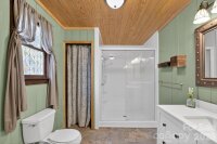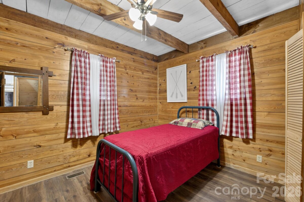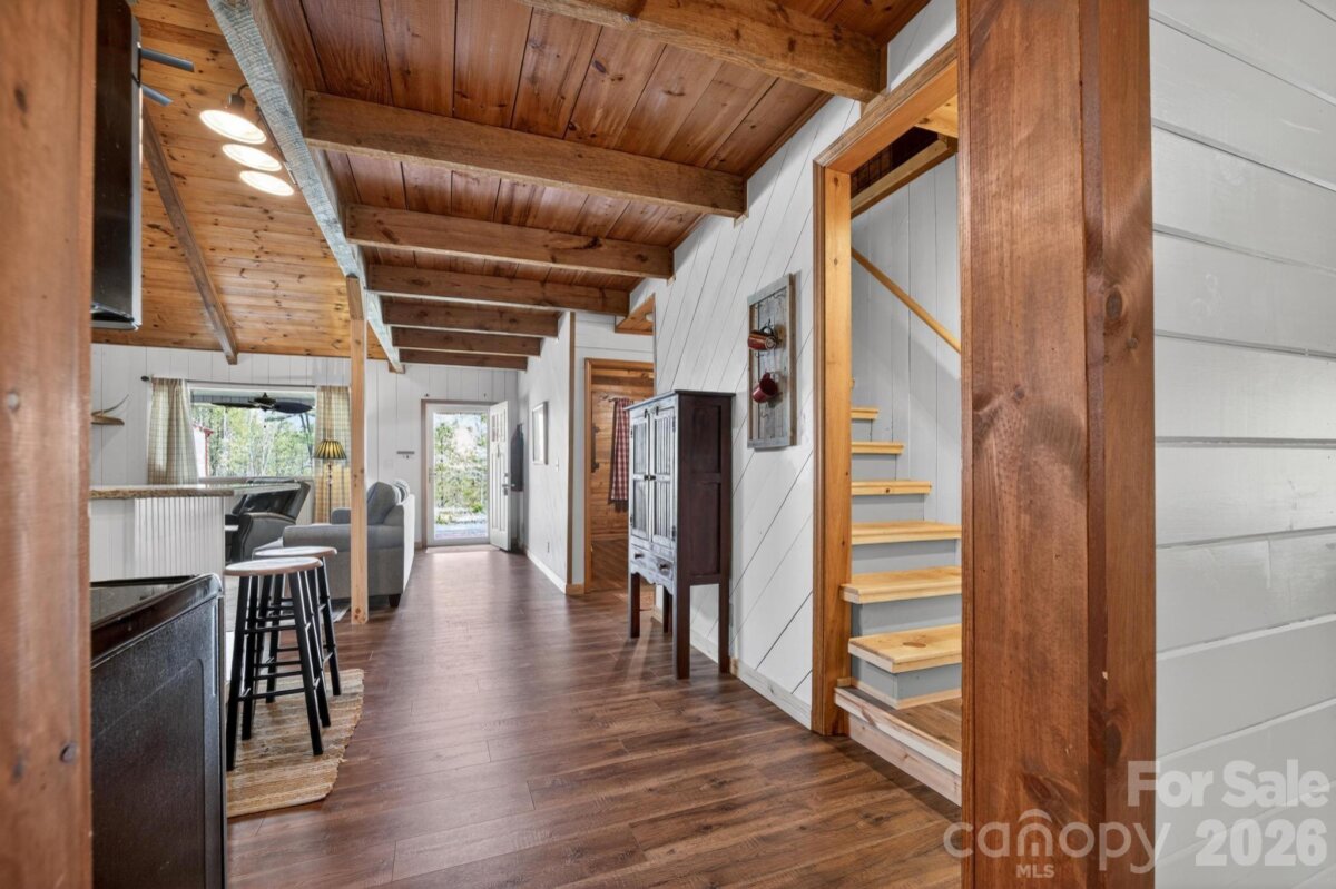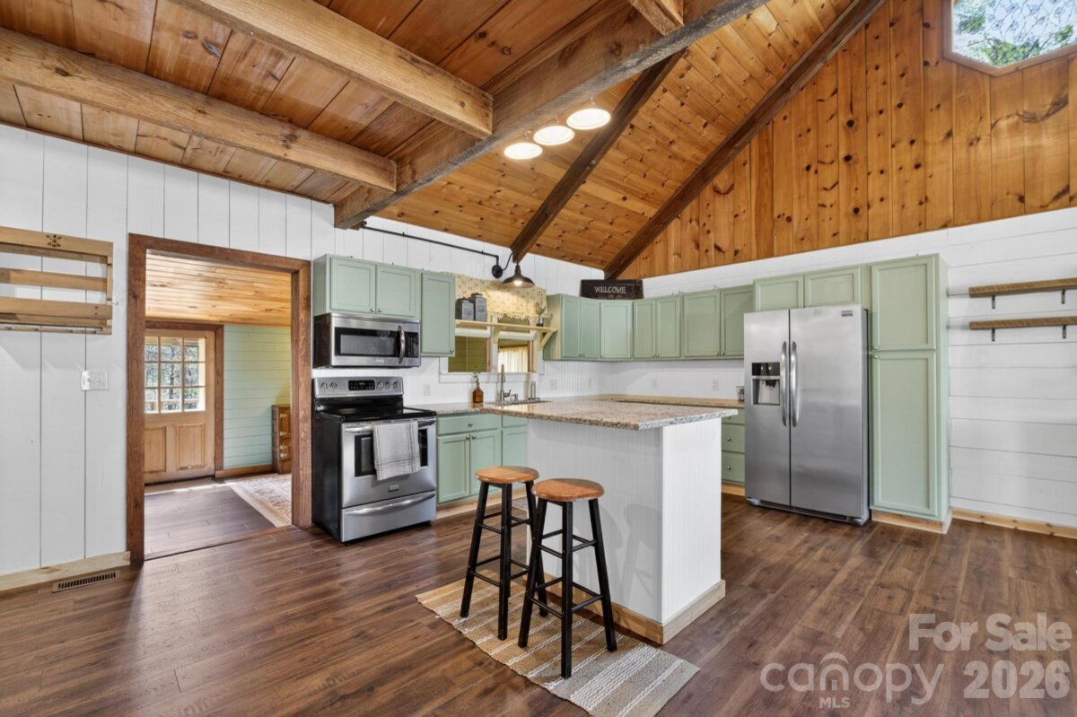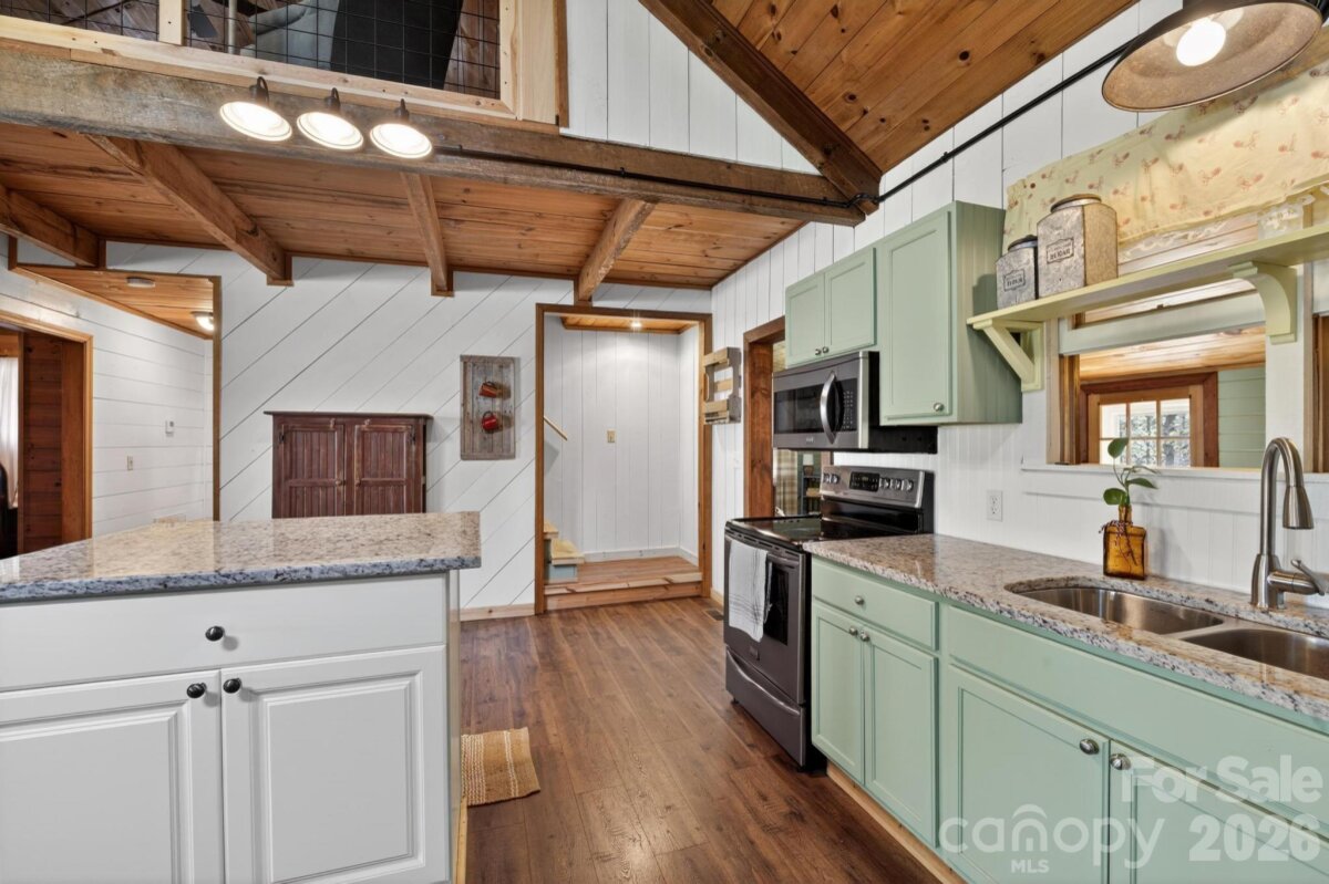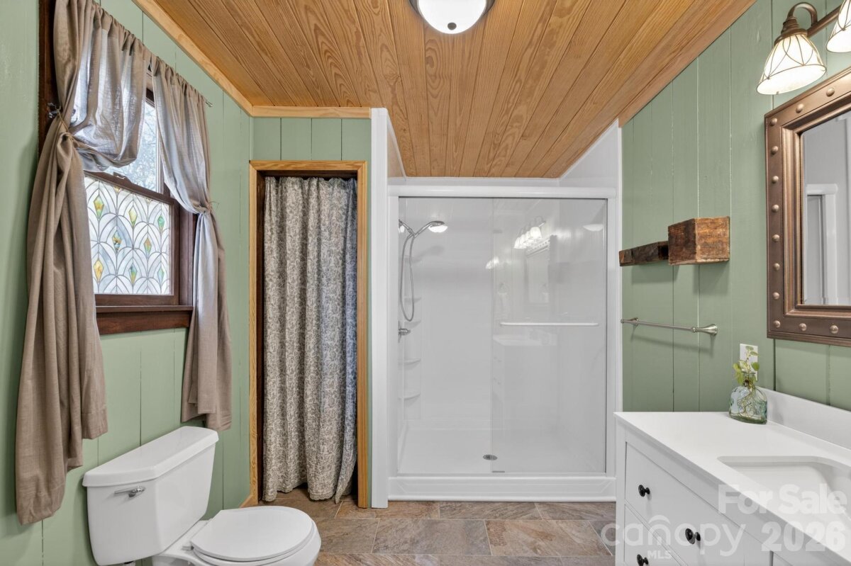 PICTURESQUE MOUNTAIN RETREAT NESTLED ON 4.74+/- ACRES WITH BREATHTAKING VIEWS! Carved out of the Foothills & Blue Ridge Mountains is the perfect gem with a beautiful landscape for a backdrop. Just like out of a story book, this gorgeously renovated mountain chalet offers a dreamy escape from the noise of the city. It is ideal for a peaceful retreat, full-time residence, or income-producing property, such as an AirBnB, and even a magical venue for weddings, parties, & more. The cozy home has been renovated inside & out. The owners meticulously recreated every nook & cranny for the perfect home. From the moment you drive up past the private gate leading into the driveway, you will fall in love. The front covered front porch comes with porch swings & rockers invites you to have a seat & relax. Inside, the great room will absolutely wow you from the stone fireplace to the woodwork to the beautifully updated kitchen with lovely granite countertops, exquisite backsplash, & comes fully equipped with appliances. The primary bedroom is on the main level, along with the beautifully designed bathroom. In addition, there is a spacious flex room off the kitchen that leads to a fantastic deck overlooking private woods. Downstairs, there is ample space for storage, including a laundry room. Because the ceiling height doesn't quite reach 7 ft, the finished room that is utilized for a bedroom is not counted in heated sq ft, however it does add some nice flexible space. Step out back to the covered patio that is like a private oasis, equipped with an old timey soaking tub, small refrigerator & cabinet or take a few steps to the fire pit where you can sit back and gaze at the stars. There is also a huge detached garage that can accommodate various uses, and has even been used as a reception and wedding venue for indoors. With abundant privacy, scenic views, & versatile spaces, the sky is the limit! This is truly a rare opportunity to own a slice of mountain paradise.