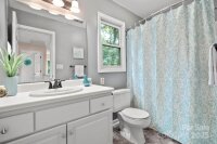 Assumable 2.75 VA Loan! Located in the tranquil Hidden Creek Estates neighborhood, this beautiful home offers privacy and comfort with no HOA fees. Situated at the end of a cul-de-sac, it backs up to scenic private land, giving you a peaceful retreat right at home. Step inside to find a spacious living room with gas logs surrounded by stone, perfect for cozy evenings. The living room also features arched doorways and luxury vinyl plank flooring throughout the common areas. The gourmet kitchen has ample space, and the open layout flows effortlessly for entertaining. Enjoy the outdoors with a covered deck, equipped with lighting, and a hot tub and fire pit in the backyard, making it ideal for year-round relaxation. The moisture barrier in the crawl space ensures energy efficiency and peace of mind. The primary bedroom suite is conveniently located on the main level, with two additional bedrooms and a full bath upstairs. Other features include a double garage and laundry room on the main level. Recent updates include a new hot water heater, newer dishwasher and a roof that's only two years old, so you can move in with confidence.