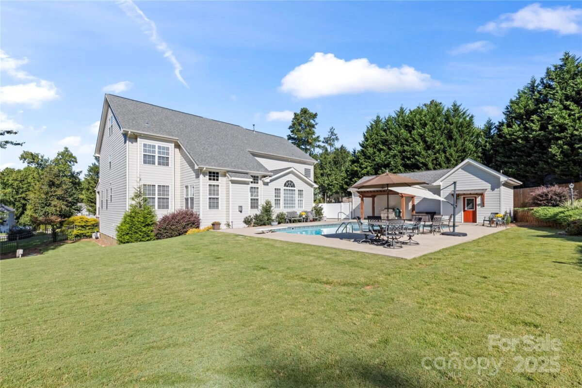 Welcome to 388 Cove Creek Loop in Mooresville – a stunning 5,187 sq ft, 2.5-story home offering 4 bedrooms, 4.5 baths, with a pool, detached workshop and an abundance of upgrades inside and out. Thoughtfully improved over the last few years, this property is truly move-in ready and designed for comfort, efficiency, and outdoor enjoyment. The front entrance has an open foyer and a dramatic circular staircase. The main level also offers hardwood floors, formal living and dining rooms, office, family room with fireplace/gas logs and blower. The gourmet kitchen has a walk-in pantry, granite countertops, an island, breakfast bar and built-in buffet. The kitchen also has a sunny eat-in area that overlooks the pool & lovely landscaped backyard. The refrigerator, washer and dryer are included. The whole house has a water treatment system with R/O water on tap at the kitchen sink and the refrigerator water dispenser. A 2nd stairway is located in the kitchen providing convenient access to the upper levels. The second level has new carpet, 4 spacious bedrooms/3 full baths including an oversized primary suite w/ sitting area and 2 walk-in closets. The third floor is a finished area that can be used as a bonus/exercise room/playroom or additional storage. This area has a full bath, a closet and walk-in access to the attic. The house was recently painted inside and out. The backyard retreat features a new heated pool house with half bath and is attached to a finished 32x20 workshop that offers endless possibilities. The workshop is heated and is wired for an EV Charging Station. A pergola for the pool deck has recently been built and the pool pump was replaced in 2025. Professional landscaping and lighting was installed in 2021 and a new irrigation control panel and rain sensor was recently added. Relax and enjoy the large backyard with new privacy fencing and appreciate the beautifully installed landscaping and lighting. Some of the other recent system updates to the home include installation of a Rinnai tankless water heater, a humidifier for the entire house installed in the crawlspace, 2 new HVAC units (2nd floor in 2021 and 3rd floor heat pump in 2023) This home combines elegance, functionality, and outdoor living in one remarkable package and is Ready to Welcome It's Next Owners. Please open this link to see more photos and listing video. https://listings.openrange704.com/388-Cove-Creek-Loop-Mooresville-NC-28117-USA