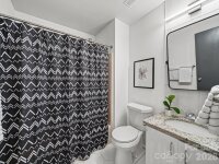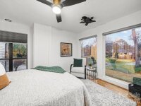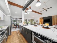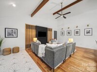 Striking contemporary home in a quiet South Charlotte neighborhood, designed for effortless indoor-outdoor living and exceptional entertaining. This 3BR/2.5BA home offers soaring vaulted ceilings, two main-level living areas, plus an upstairs loft ideal for an office or study. Expansive sliding glass doors open from the family room, living room, and dining room to an incredible outdoor oasis featuring a covered porch with TV and speakers, freshly painted oversized deck, pergola, private fenced backyard, and hot tub—all set on a rare 0.59-acre lot. The updated kitchen showcases black-and-white cabinetry, quartz countertops and backsplash, stainless steel appliances, island, and seamless flow to the breakfast area family room and outdoor spaces. Design highlights include hardwood floors throughout, updated lighting, wet bar, wood-slat TV wall, and Opti-Myst Pro vapor fireplace. The primary suite is a true retreat with custom wardrobe wall, motorized blinds, drop-down TV, and spa-like bath with custom tile shower and granite vanity. EV charging station, refrigerator, washer and dryer included. Recent updates include ductwork, roof (2020), and HVAC replacements. Located near sought-after South Charlotte schools.