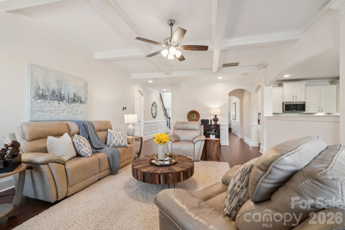Experience refined living in this all-brick turn-key home within the prestigious Anklin Forrest community. A perfect blend of high-end design and modern efficiency. Boasting sophisticated coffered ceilings, new modern lighting and ultra-strand bamboo flooring and an open-concept floor plan. Welcoming front porch, open foyer, engaging formal dining room, an office with a "sunny disposition" featuring vaulted ceiling allowing for much natural light and glass french doors. You will be excited to entertain in your gourmet kitchen, professionally painted ivory cabinets equipped with a new gas cooktop, Smart GE double oven, tons of cabinets and countertop space, island and bar area. The bayed breakfast area overlooks the private backyard. Main-level primary suite offers new plush carpeting and a spa-inspired bath with jacuzzi tub. Large laundry room with sink and rear exterior access. Second floor delivers a versatile bonus room featuring a Tonal fitness system**, an ensuite bedroom, and sizeable secondary bedrooms with two more full baths. A total of 5 bedrooms and 4.5 baths-check out these large bedrooms, you will be impressed! Premium features and upgrades include: oversized deck, tankless water heater (2024) encapsulated crawl space with dehumidifier, 2.5 Car extended side-load garage design with a dedicated EV charger*** and expanded exterior parking pad. Freshly curated deck overlooking a serene, expansive common area. Highly rated assigned public schools, community pool and amenities plus a premier location. Truly a win-win-win! Easy access to charming downtown Waxhaw, Ballantyne, I-485, shopping and groceries nearby. Be sure to check out the brand new park in downtown Waxhaw. This nearly 10-acre park is a game-changer for the community, featuring a playground, a mini amphitheater for summer plays and festivals, and eco-friendly natural springs. Enjoy the multi-sport area, exercise stations, and two large pavilions perfect for events. Discover why Waxhaw remains a top choice!