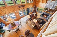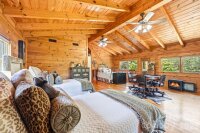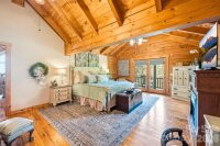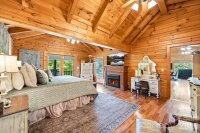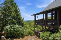 Perched high above the Blue Ridge landscape in the gated community of High Peak Mountain Estates, this extraordinary mountain retreat offers the kind of views most people only experience on scenic overlooks. From sunrise hues to unforgettable sunset skies, the long-range mountain vistas create a breathtaking backdrop for everyday living. Designed to capture both comfort and connection to the outdoors, the home features soaring cathedral ceilings and expansive windows that fill the open-concept living spaces with natural light while framing the mountains beyond. A dramatic rock fireplace anchors the main living area, creating the perfect gathering space after a day exploring the mountains. With approximately 4,100 square feet, this thoughtfully designed home offers 3 bedrooms and 4 baths, including convenient main-level living with a bedroom and laundry on the main floor. Upstairs, the spacious primary suite serves as a private retreat complete with a freestanding electric fireplace, spa-inspired bath with jacuzzi tub, dual vanity, and walk-in shower. A loft overlooking the living area provides flexible space for an office, reading nook, or additional lounge area. The home was built with entertaining in mind. The finished lower level features a large recreation room with fireplace, a bar area with kitchenette, and an additional bedroom and full bath with sauna. With the pool table included, it's an ideal setting for hosting friends and family. Outdoor living is equally impressive. Three covered decks, including a screened porch and a private balcony off the primary suite, offer multiple spaces to take in the surrounding landscape. Enjoy evenings in the eight-person hot tub, gather around the fire pit under the stars, or relax while surrounded by thoughtfully curated landscaping featuring vibrant flowering plants, mature trees, and seasonal blooms throughout the property. The seller has invested in numerous improvements including a new concrete driveway, refreshed decks, copper porch accents, upgraded lighting, new kitchen appliances, updated bathrooms, and interior enhancements that add both style and functionality. Short-term rentals are permitted, offering exceptional flexibility whether you’re searching for a private mountain escape, full-time residence, or investment opportunity.