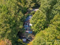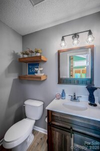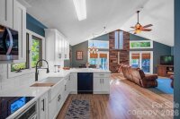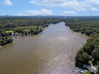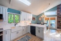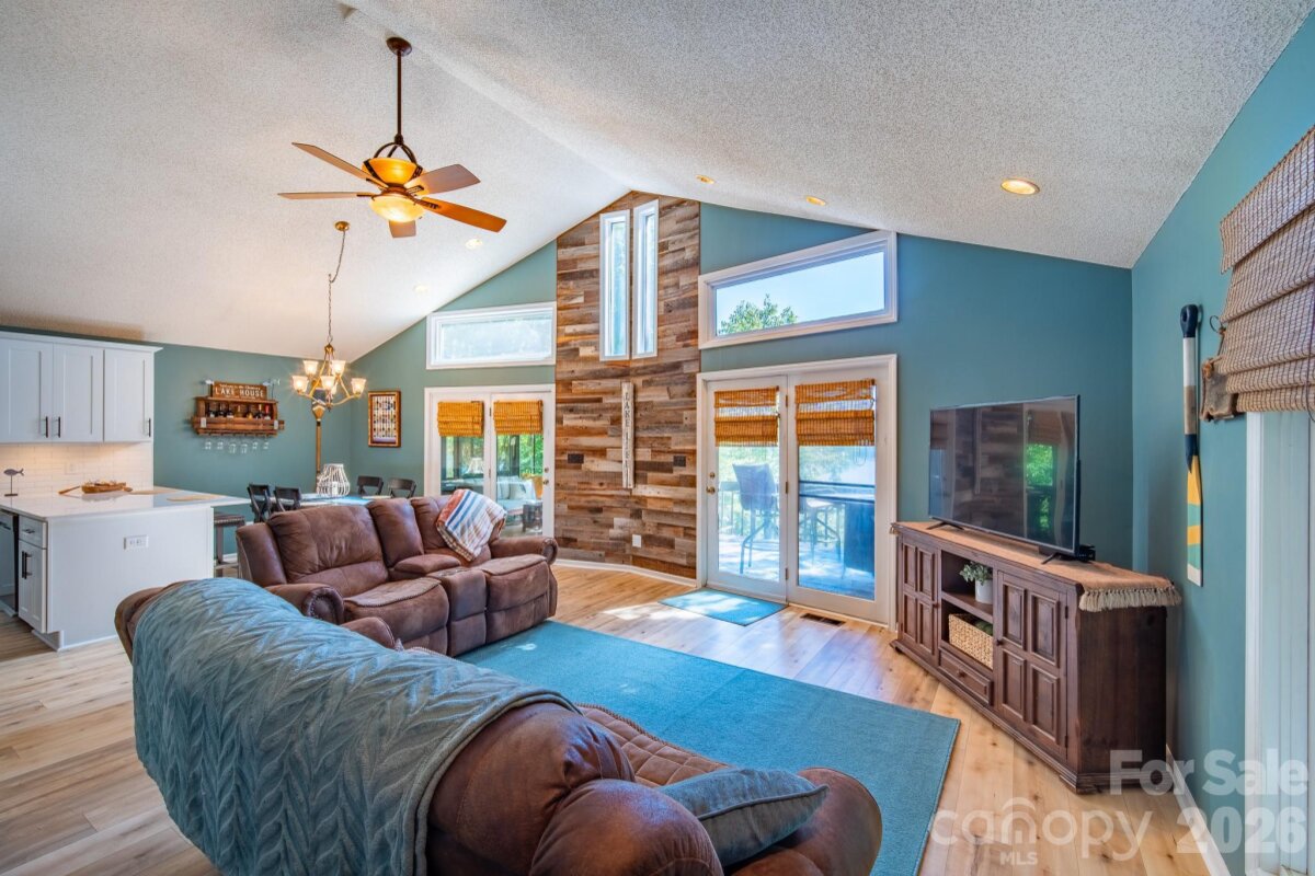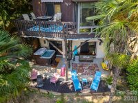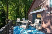 Lake life meets mountain life for oasis of relaxation, entertainment, & adventure! This lake front home with its own dock has expansive decks (freshly painted) & patio areas to soak in the most beautiful views of lush greenery and sparkling waters from the hot tub! Inside is as beautiful as the outside views with a remodeled kitchen featuring quartz counter tops, SS appliances, & peninsula bar seating that opens to dining & living areas. Vaulted ceilings & additional windows to allow natural light to pour into home add to the expanse and warmth of this home. Sunroom off dining area perfect for your morning coffee. Primary suite on main with granite counters in bathroom, built in drawers, & multiple closet spaces. Upstairs find spacious second bedroom or head to basement for office space and rec room or additional living space. Two more rooms & full bathroom that could serve for lodging. ROOF 2025! HVAC 2024! Storage building conveys. Neighborhood boat access around the corner!